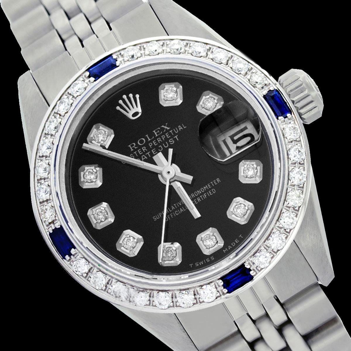 WATCH DETAILS: ITEM: WatchBRAND: RolexTYPE: Stainless SteelFEATURE: QuickSetMODEL: DateJustMADE: Swiss MadeGENDER: Men'sCONDITION: Pre-OwnedFUNCTION: DateDIAL COLOR: BlackHOUR MARKERS: 10 Round Custom Made DiamondBEZEL TYPE: Custom Made Diamond & Sapphire BezelBEZEL STONE: Diamond 1 CTW G-VVS1 & Ceylon Blue SapphireBEZEL MATERIAL: 18K GoldBRACELET TYPE: Jubilee BRACELET MATERIAL: Stainless SteelCLASP TYPE: Folding ClaspCLASP MATERIAL: Stainless SteelCASE STONE: CASE SIZE: 36mmCRYSTAL: Scratch Resistance Sapphire CrystalMOVEMENT: Automatic (Self Winding)CALIBER: 3035CROWN TYPE: Screw Down CrownWATER RESISTANCE: Waterproof to 10 ATM/100 meters/330 feetMODEL #: 16014SKU #: AMSJQS49We Buy/Sell/Trade Valuable watches, Please call us
