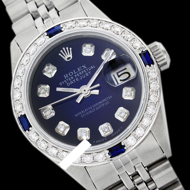 WATCH DETAILS: ITEM: WatchBRAND: RolexTYPE: Stainless SteelFEATURE: QuickSetMODEL: DateJustMADE: Swiss MadeGENDER: Men'sCONDITION: Pre-OwnedFUNCTION: DateDIAL COLOR: BlueHOUR MARKERS: 10 Round Custom Made DiamondBEZEL TYPE: Custom Made Diamond & Sapphire BezelBEZEL STONE: Diamond 1 CTW G-VVS1 & Ceylon Blue SapphireBEZEL MATERIAL: 18K GoldBRACELET TYPE: Jubilee BRACELET MATERIAL: Stainless SteelCLASP TYPE: Folding ClaspCLASP MATERIAL: Stainless SteelCASE STONE: CASE SIZE: 36mmCRYSTAL: Scratch Resistance Sapphire CrystalMOVEMENT: Automatic (Self Winding)CALIBER: 3035CROWN TYPE: Screw Down CrownWATER RESISTANCE: Waterproof to 10 ATM/100 meters/330 feetMODEL #: 16014SKU #: AMSJQS130We Buy/Sell/Trade Valuable watches, Please call us