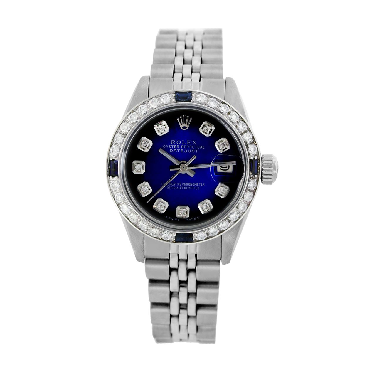 REF-521T4K ---- Rolex Men's Stainless Steel, QuickSet, Diam Dial & Diam/Sapphire BezelThis watch is in Excellent Condition.
