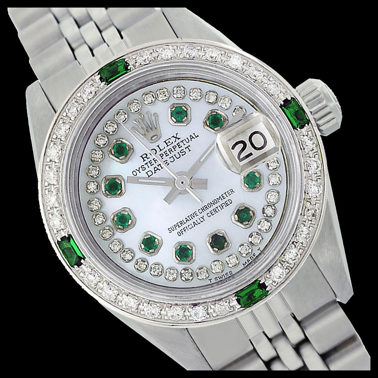 Rolex Men's Stainless Steel, QuickSet, Diam/Emerald Dial & Diam/Emerald BezelThis watch is in Excellent Condition.