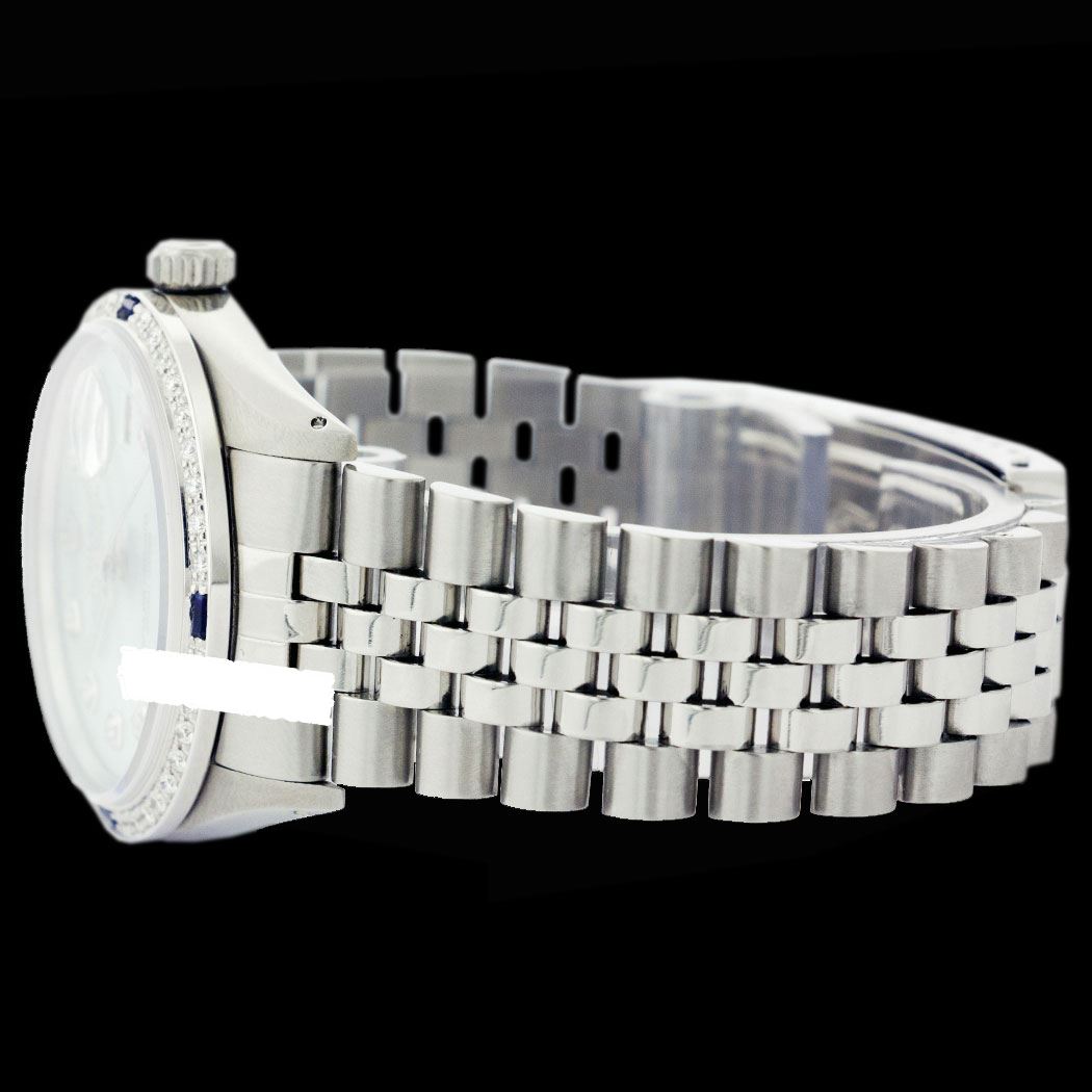 WATCH DETAILS: ITEM: WatchBRAND: RolexTYPE: Stainless SteelFEATURE: QuickSetMODEL: DateJustMADE: Swiss MadeGENDER: Men'sCONDITION: Pre-OwnedFUNCTION: DateDIAL COLOR: BlueHOUR MARKERS: 10 Round Custom Made DiamondBEZEL TYPE: Custom Made Diamond BezelBEZEL STONE: Diamond 1.14 CTW G-VVS1 BEZEL MATERIAL: 18K GoldBRACELET TYPE: Jubilee BRACELET MATERIAL: Stainless SteelCLASP TYPE: Folding ClaspCLASP MATERIAL: Stainless SteelCASE STONE: CASE SIZE: 36mmCRYSTAL: Scratch Resistance Sapphire CrystalMOVEMENT: Automatic (Self Winding)CALIBER: 3035CROWN TYPE: Screw Down CrownWATER RESISTANCE: Waterproof to 10 ATM/100 meters/330 feetMODEL #: 16014SKU #: AMSJQS145We Buy/Sell/Trade Valuable watches, Please call us