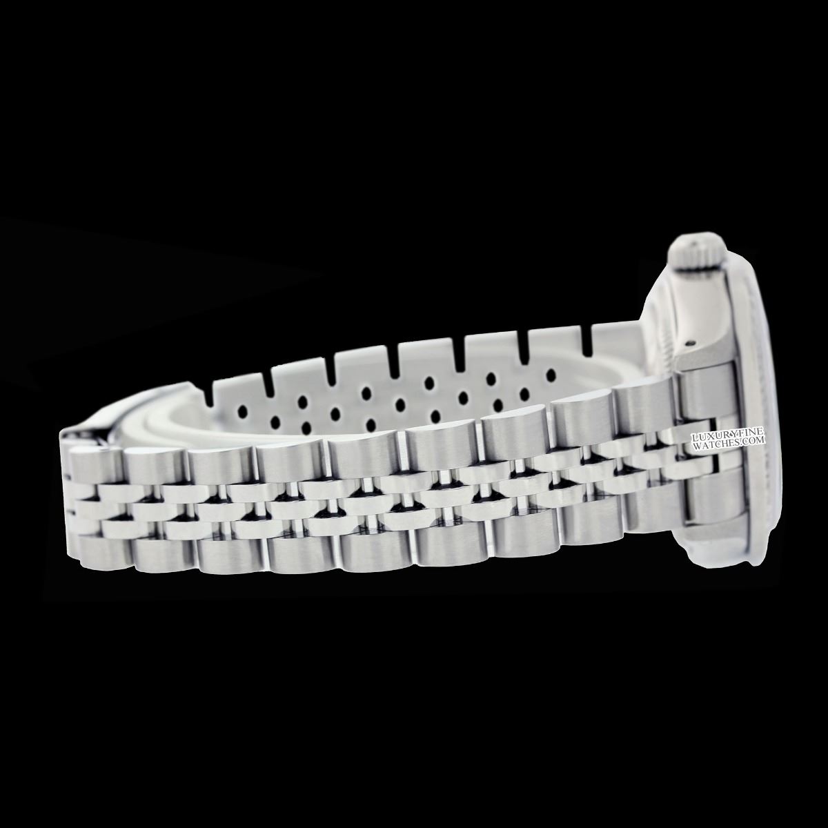 WATCH DETAILS: ITEM: WatchBRAND: RolexTYPE: Stainless SteelFEATURE: QuickSetMODEL: DateJustMADE: Swiss MadeGENDER: Men'sCONDITION: Pre-OwnedFUNCTION: DateDIAL COLOR: BlueHOUR MARKERS: 10 Round DiamondBEZEL TYPE: Diamond BezelBEZEL STONE: Diamond 1.14 CTW G-VVS1 BEZEL MATERIAL: 18K GoldBRACELET TYPE: Jubilee BRACELET MATERIAL: Stainless SteelCLASP TYPE: Folding ClaspCLASP MATERIAL: Stainless SteelCASE STONE: CASE SIZE: 36mmCRYSTAL: Scratch Resistance Sapphire CrystalMOVEMENT: Automatic (Self Winding)CALIBER: 3035CROWN TYPE: Screw Down CrownWATER RESISTANCE: Waterproof to 10 ATM/100 meters/330 feetMODEL #: 16014SKU #: AMSJQS93We Buy/Sell/Trade Valuable watches, Please call usNote: Presentational generic box included. This watch was professionally inspected and serviced prior to auction. We are not affiliated with Rolex USA, Inc.