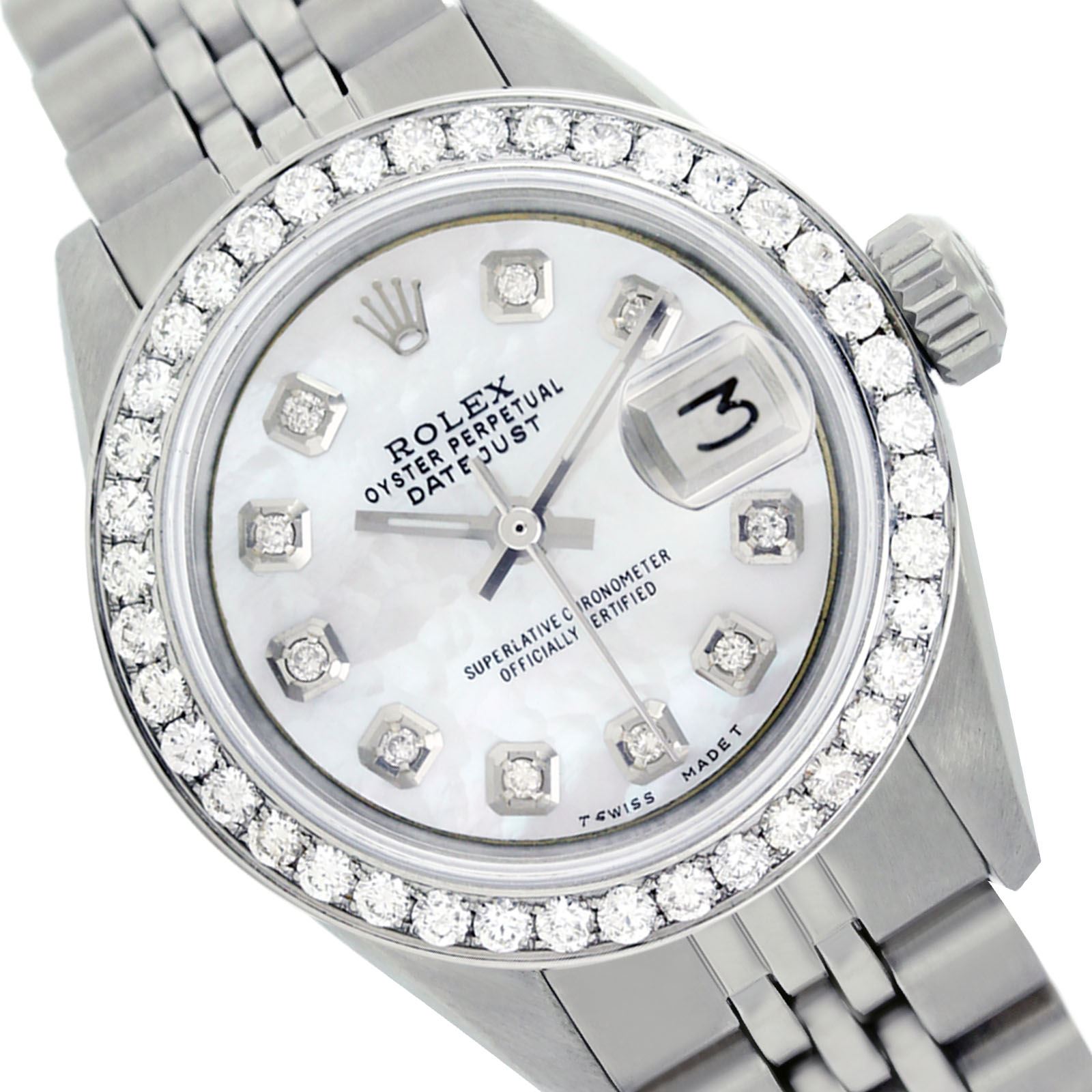 REF-474M5H ---- Rolex Men's Stainless Steel, QuickSet, Diamond Dial & Diamond BezelThis watch is in Excellent Condition.
