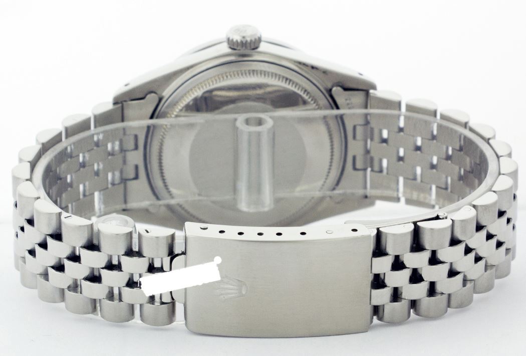 WATCH DETAILS: ITEM: WatchBRAND: RolexTYPE: Stainless SteelFEATURE: QuickSetMODEL: DateJustMADE: Swiss MadeGENDER: Men'sCONDITION: Pre-OwnedFUNCTION: DateDIAL COLOR: BlackHOUR MARKERS: String Custom Made Diamond + 10 Round Custom Made DiamondBEZEL TYPE: Custom Made Diamond BezelBEZEL STONE: Diamond 1.14 CTW G-VVS1 BEZEL MATERIAL: 18K GoldBRACELET TYPE: Jubilee BRACELET MATERIAL: Stainless SteelCLASP TYPE: Folding ClaspCLASP MATERIAL: Stainless SteelCASE STONE: .85 CTW G-VVS1 DIAMOND CUSTOMCASE SIZE: 36mmCRYSTAL: Scratch Resistance Sapphire CrystalMOVEMENT: Automatic (Self Winding)CALIBER: 3035CROWN TYPE: Screw Down CrownWATER RESISTANCE: Waterproof to 10 ATM/100 meters/330 feetMODEL #: 16014SKU #: AMSJQS123We Buy/Sell/Trade Valuable watches, Please call us