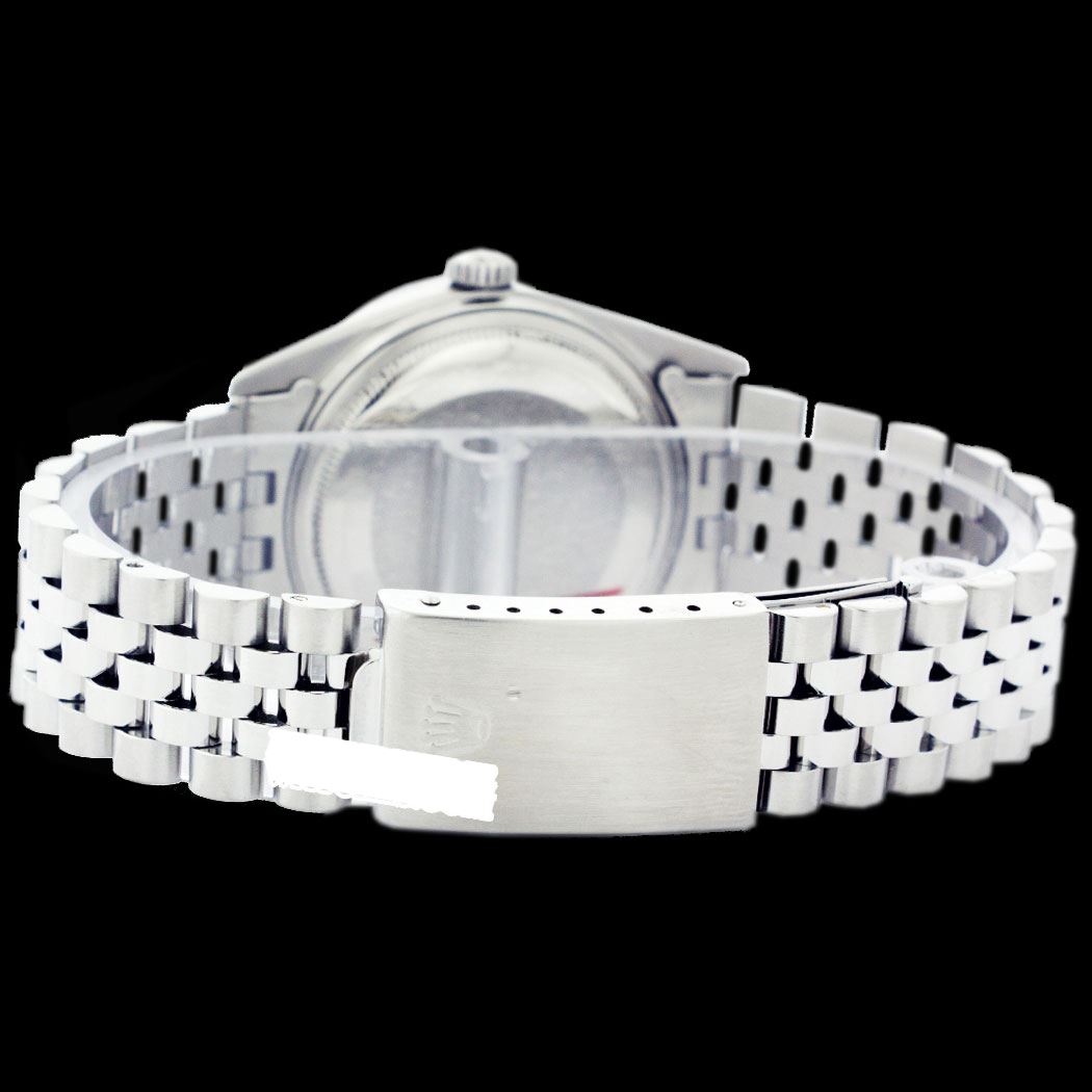 WATCH DETAILS: ITEM: WatchBRAND: RolexTYPE: Stainless SteelFEATURE: QuickSetMODEL: DateJustMADE: Swiss MadeGENDER: Men'sCONDITION: Pre-OwnedFUNCTION: DateDIAL COLOR: BlueHOUR MARKERS: 10 Round Custom Made DiamondBEZEL TYPE: Custom Made Diamond BezelBEZEL STONE: Diamond 1.14 CTW G-VVS1 BEZEL MATERIAL: 18K GoldBRACELET TYPE: Jubilee BRACELET MATERIAL: Stainless SteelCLASP TYPE: Folding ClaspCLASP MATERIAL: Stainless SteelCASE STONE: CASE SIZE: 36mmCRYSTAL: Scratch Resistance Sapphire CrystalMOVEMENT: Automatic (Self Winding)CALIBER: 3035CROWN TYPE: Screw Down CrownWATER RESISTANCE: Waterproof to 10 ATM/100 meters/330 feetMODEL #: 16014SKU #: AMSJQS145We Buy/Sell/Trade Valuable watches, Please call us