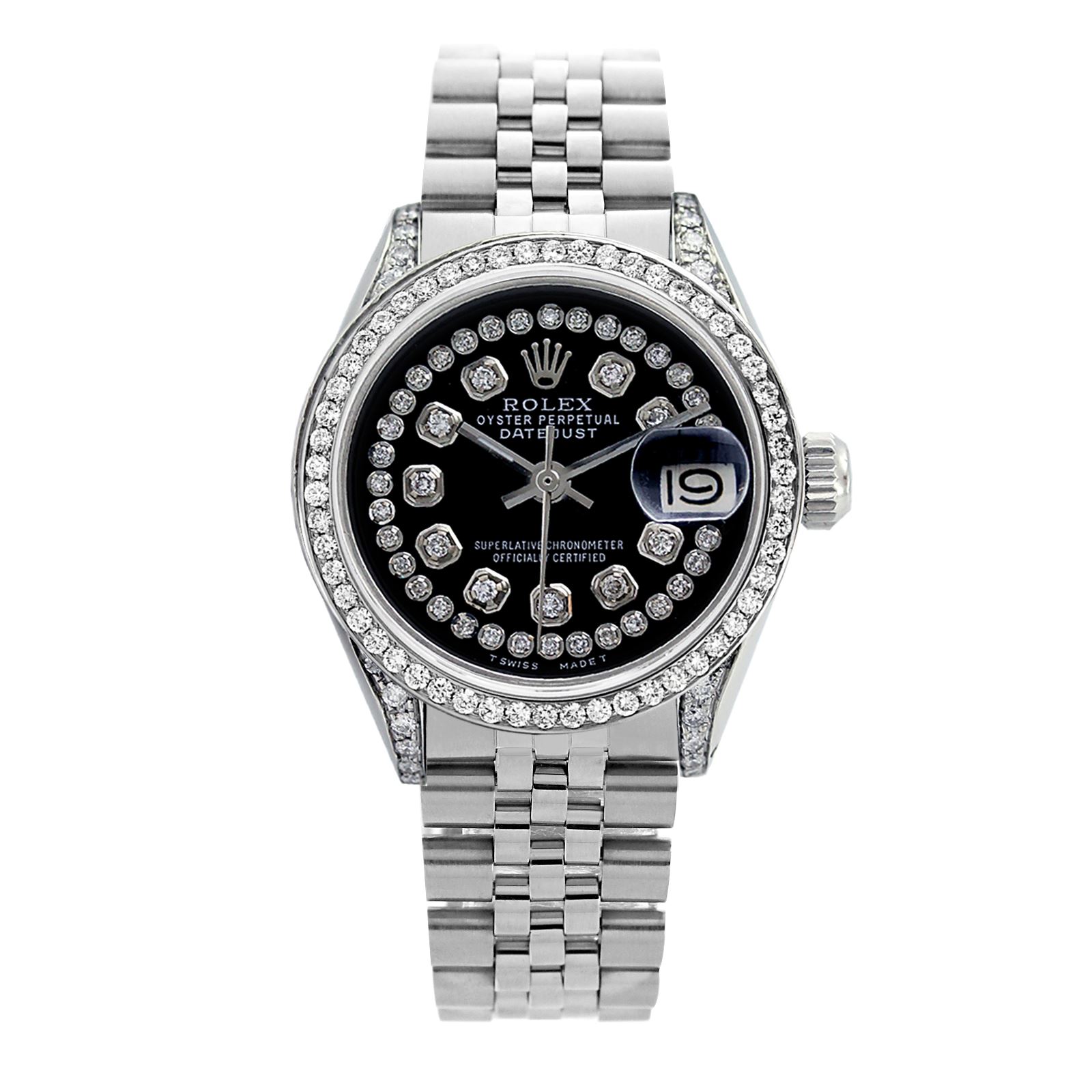 REF-587T4K ---- Rolex Men's Stainless Steel, QuickSet, Diamond Dial & Diamond BezelThis watch is in Excellent Condition.