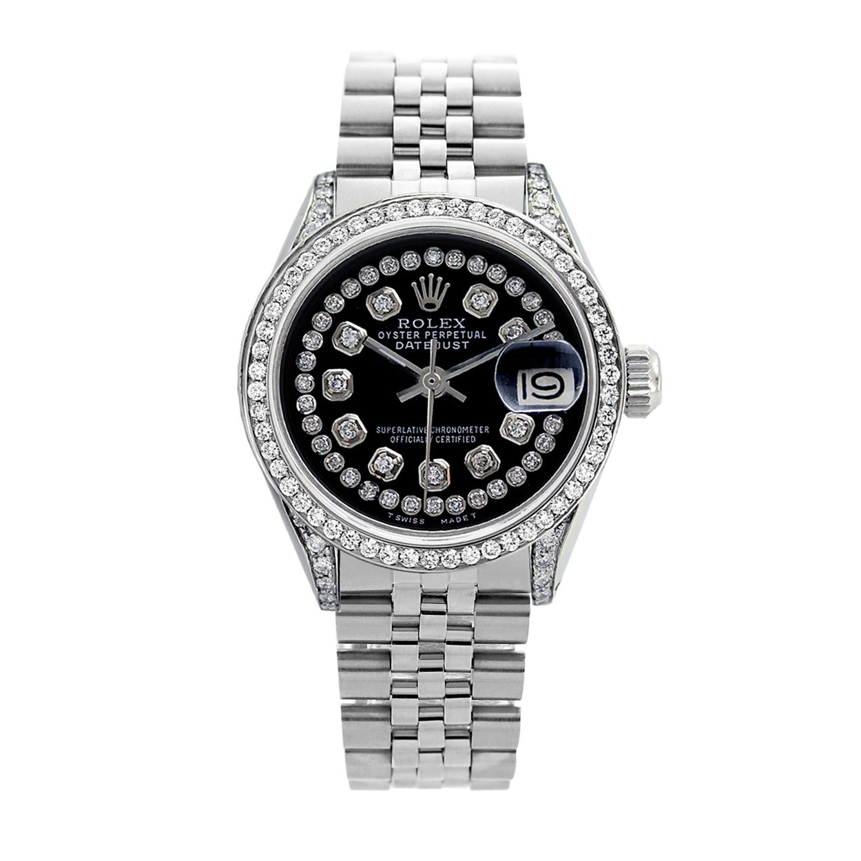 WATCH DETAILS: ITEM: WatchBRAND: RolexTYPE: Stainless SteelFEATURE: QuickSetMODEL: DateJustMADE: Swiss MadeGENDER: Men'sCONDITION: Pre-OwnedFUNCTION: DateDIAL COLOR: BlackHOUR MARKERS: String Custom Made Diamond + 10 Round Custom Made DiamondBEZEL TYPE: Custom Made Diamond BezelBEZEL STONE: Diamond 1.14 CTW G-VVS1 BEZEL MATERIAL: 18K GoldBRACELET TYPE: Jubilee BRACELET MATERIAL: Stainless SteelCLASP TYPE: Folding ClaspCLASP MATERIAL: Stainless SteelCASE STONE: .85 CTW G-VVS1 DIAMOND CUSTOMCASE SIZE: 36mmCRYSTAL: Scratch Resistance Sapphire CrystalMOVEMENT: Automatic (Self Winding)CALIBER: 3035CROWN TYPE: Screw Down CrownWATER RESISTANCE: Waterproof to 10 ATM/100 meters/330 feetMODEL #: 16014SKU #: AMSJQS23We Buy/Sell/Trade Valuable watches, Please call us