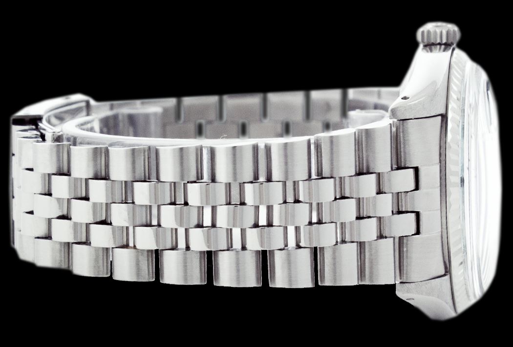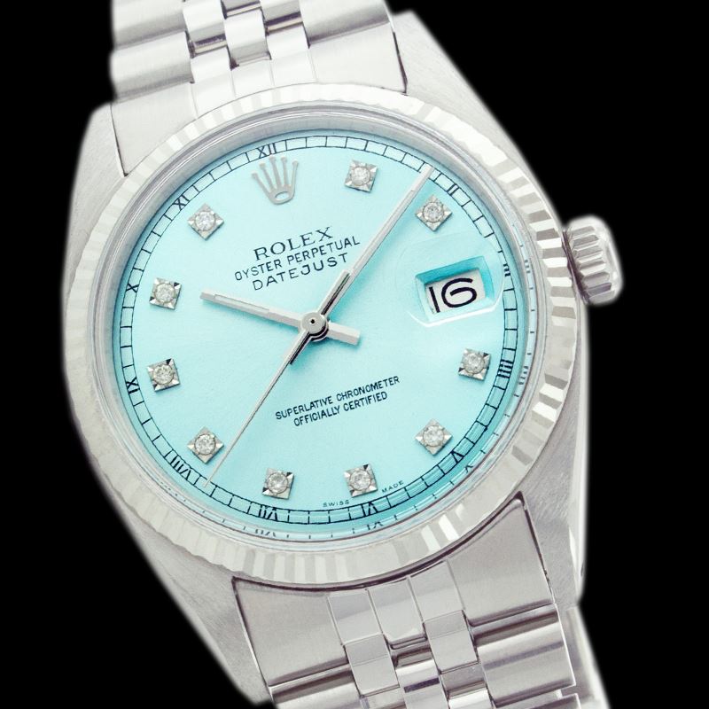 WATCH DETAILS: ITEM: WatchBRAND: RolexTYPE: Stainless SteelFEATURE: QuickSetMODEL: DateJustMADE: Swiss MadeGENDER: Men'sCONDITION: Pre-OwnedFUNCTION: DateDIAL COLOR: Ice BlueHOUR MARKERS: 10 Round Custom Made DiamondBEZEL TYPE: Fluted BezelBEZEL STONE: No StoneBEZEL MATERIAL: 18K GoldBRACELET TYPE: Jubilee BRACELET MATERIAL: Stainless SteelCLASP TYPE: Folding ClaspCLASP MATERIAL: Stainless SteelCASE STONE: CASE SIZE: 36mmCRYSTAL: Acrylic MOVEMENT: Automatic (Self Winding)CALIBER: 3035CROWN TYPE: Screw Down CrownWATER RESISTANCE: Waterproof to 10 ATM/100 meters/330 feetMODEL #: 16014SKU #: AMSJQP88We Buy/Sell/Trade Valuable watches, Please call us