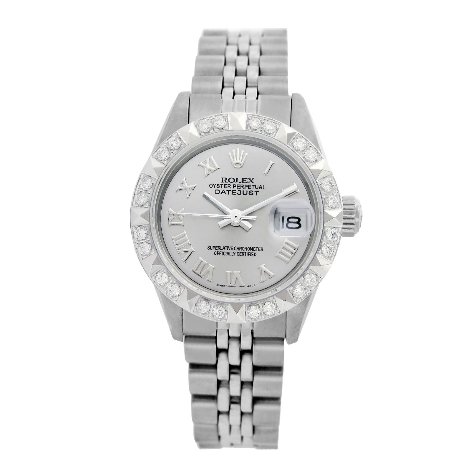Rolex Men's Stainless Steel, QuickSet, Roman Dial with Pyrimid Diam Bezel - REF-509Y7X