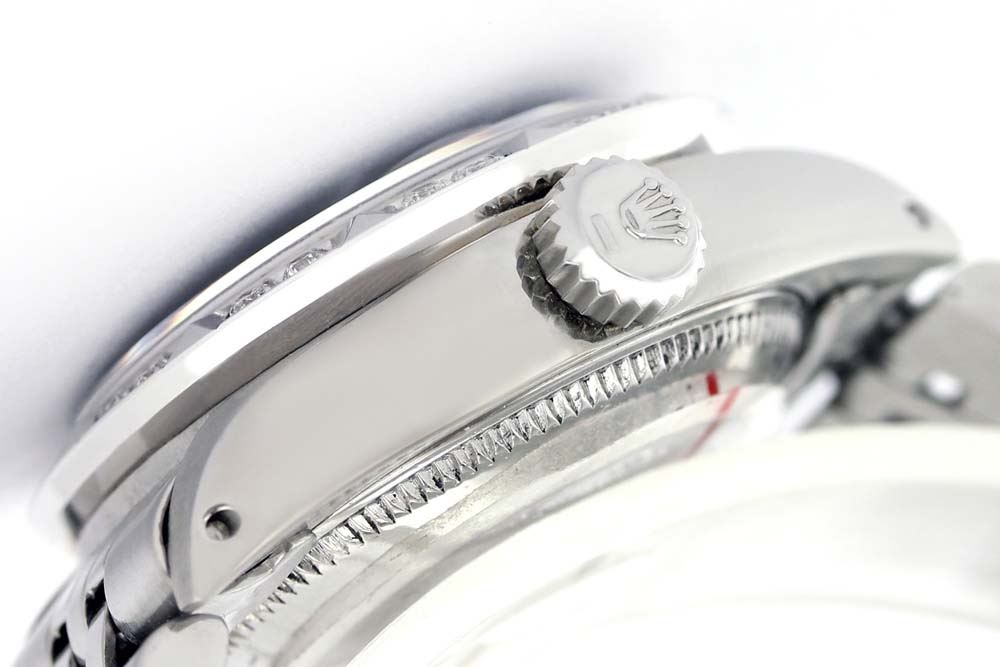 WATCH DETAILS: ITEM: WatchBRAND: RolexTYPE: Stainless SteelFEATURE: QuickSetMODEL: DateJustMADE: Swiss MadeGENDER: Men'sCONDITION: Pre-OwnedFUNCTION: DateDIAL COLOR: Slate GreyHOUR MARKERS: RomanBEZEL TYPE: Pyrimid Custom Made Diamond Bezel BEZEL STONE: Diamond G-VVS1 BEZEL MATERIAL: 18K GoldBRACELET TYPE: Jubilee BRACELET MATERIAL: Stainless SteelCLASP TYPE: Folding ClaspCLASP MATERIAL: Stainless SteelCASE STONE: CASE SIZE: 36mmCRYSTAL: Scratch Resistance Sapphire CrystalMOVEMENT: Automatic (Self Winding)CALIBER: 3035CROWN TYPE: Screw Down CrownWATER RESISTANCE: Waterproof to 10 ATM/100 meters/330 feetMODEL #: 16014SKU #: AMSJQS81We Buy/Sell/Trade Valuable watches, Please call us