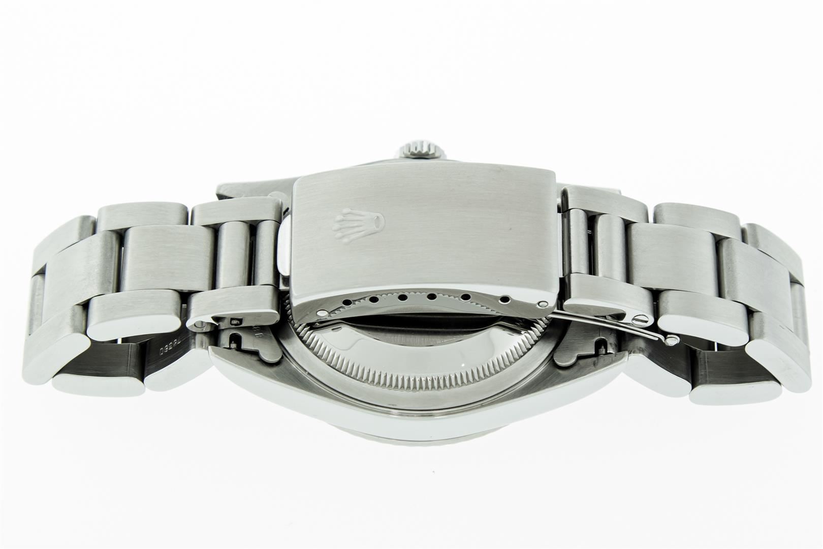 One Men's Pre Owned Rolex Stainless Steel Datejust Polished Bright with Satin Finish, Serviced & Electronically Tested, Rolex Stainless Steel Case: 36mm, Rolex Stainless Steel Crown, Rolex Bezel: 18K White Gold Fluted Bezel. Custom Crystal: New Sapphire With Magnified Date Window. Rolex Movement: Automatic Winding Movement Caliber 3135. Rolex Dial: Slate Grey Roman With Square Track. Date Window: 3 O'clock Position Date Display, Quickset, Model: Quickset Datejust. Condition: G-6 Extra Fine. Rolex Bracelet: Stainless Steel Oyster Band. Bright Polish & Satin Finish. 7.0 Inch Length, Adjustable. Standard Clasp, With Rolex Logo. This Pre Owned Watch Comes With A Rolex Box, Rolex Booklets, and Rolex Wallet.