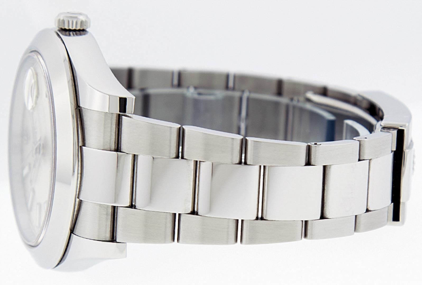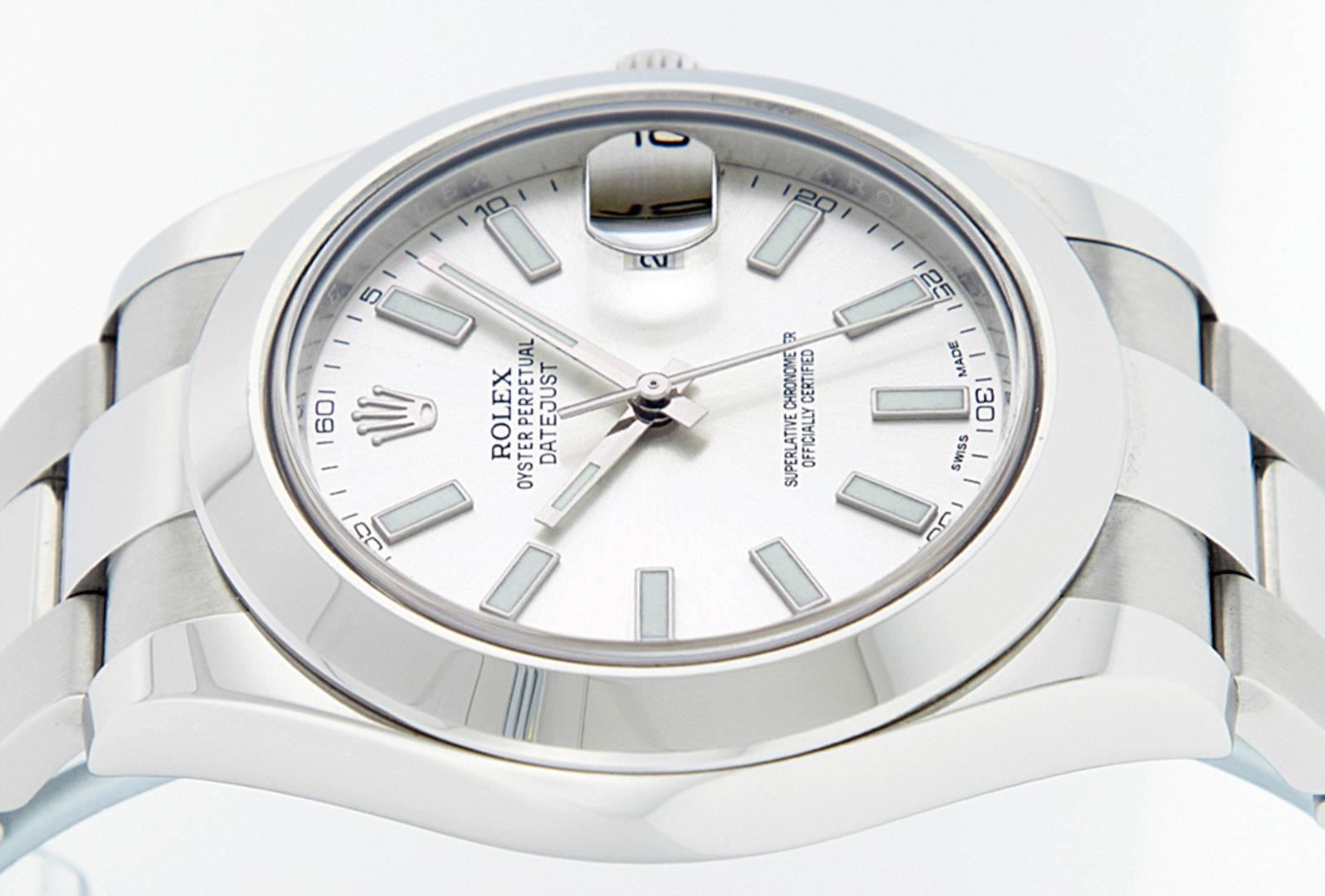 One Men's Rolex Datejust 2 41MM Polished, Serviced & Electronically Tested, Rolex Stainless Steel Case: 41mm, Stainless Steel Crown, Rolex Bezel: Stainless Steel Smooth Bezel, Crystal: Sapphire With Magnified Date Window. Hands: Luminescent Hands. Rolex Movement: Automatic Winding Movement 3136. Rolex Dial: White Index With Dash Track. Date Window: 3 O'Clock Position Date Display, Quickset, Model: Datejust 2. Condition: G-6 Extra Fine. Rolex Bracelet: Stainless Steel Oyster Band. Bright Polish & Satin Finish. 7.0 Inch Length, Adjustable. Standard Clasp, With Rolex Logo. This Pre Owned Watch Has Been Serviced Time Tested And Is In Excellent Condition It Is Free Of All Scratches And Dents.