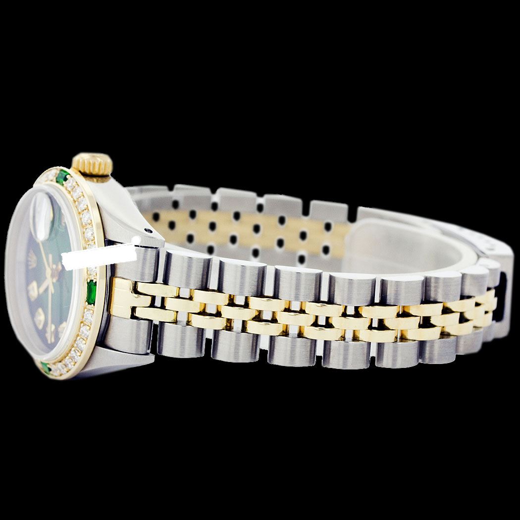 REF-474W5K ---- Rolex Men's Two Tone 14K Gold/ss, QuickSet, Diam Dial & Diam/Emerald BezelThis watch is in Excellent Condition.
