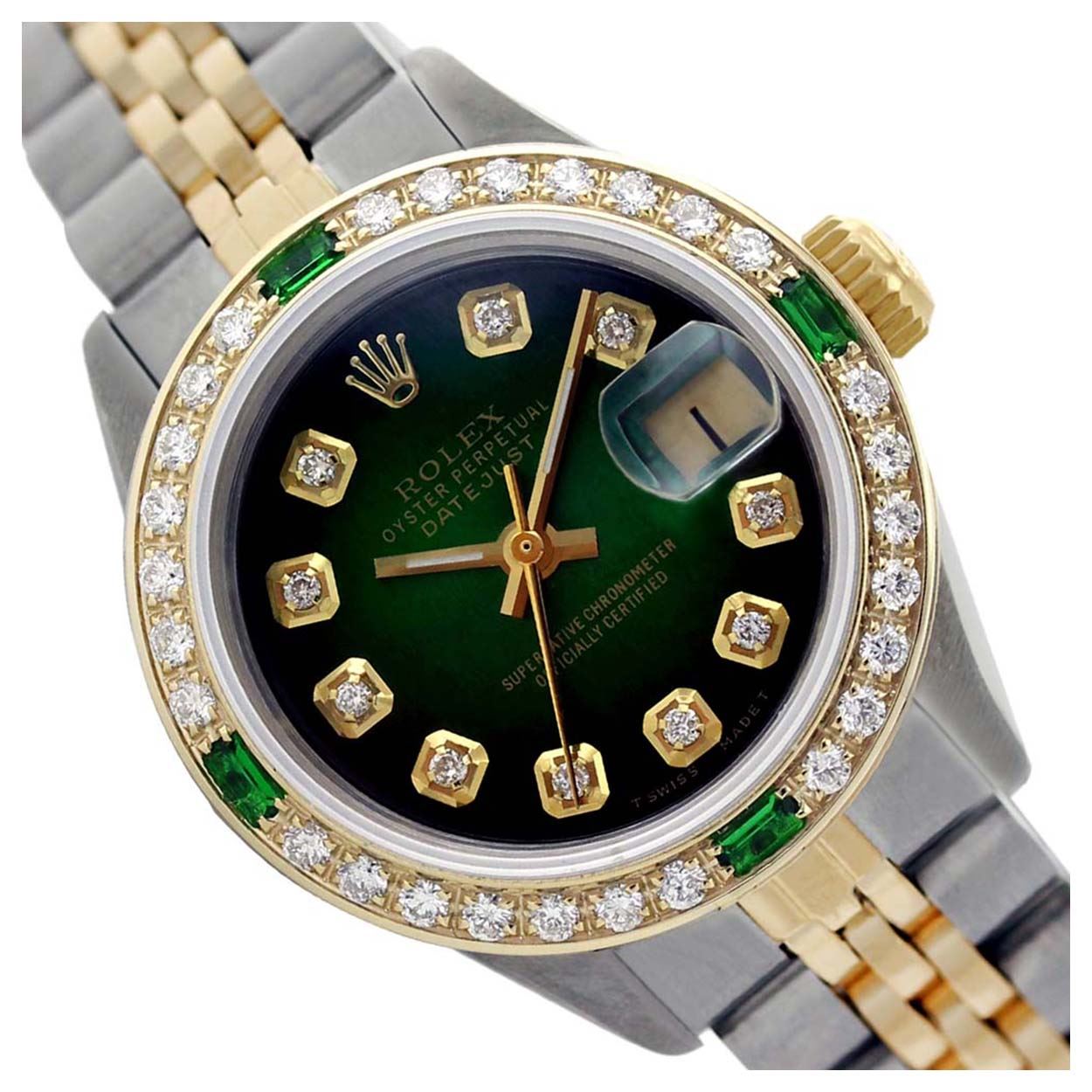 REF-557N3A ---- Rolex Men's Two Tone 14K Gold/ss, QuickSet, Diam Dial & Diam/Emerald BezelThis watch is in Excellent Condition.