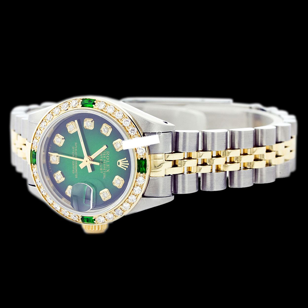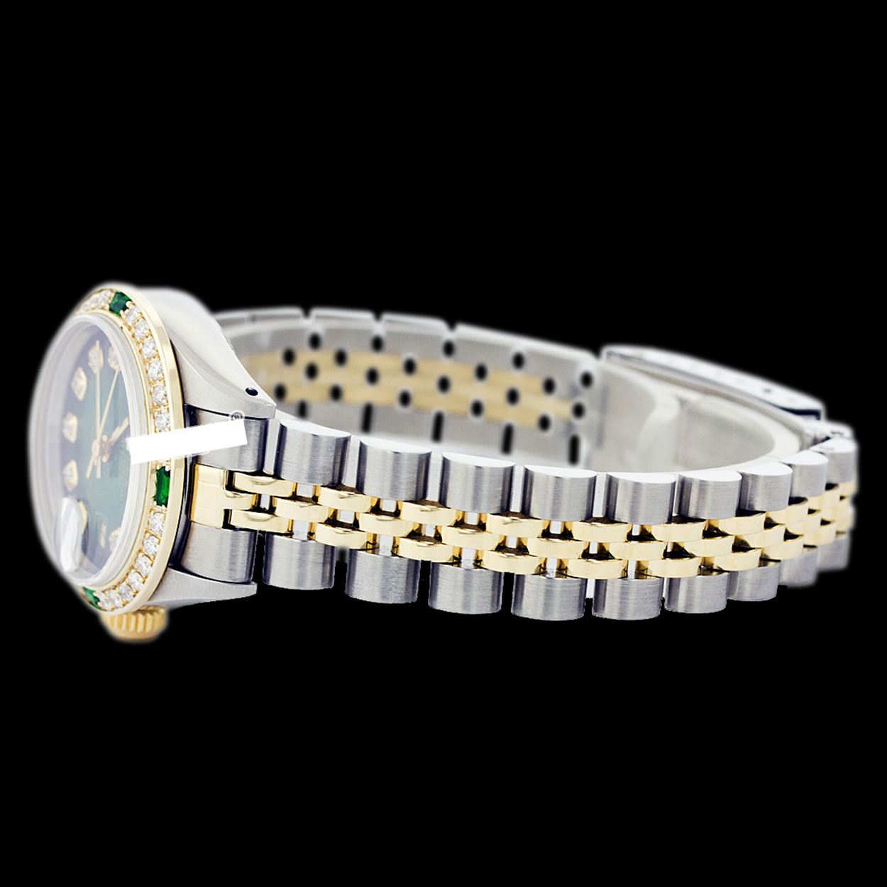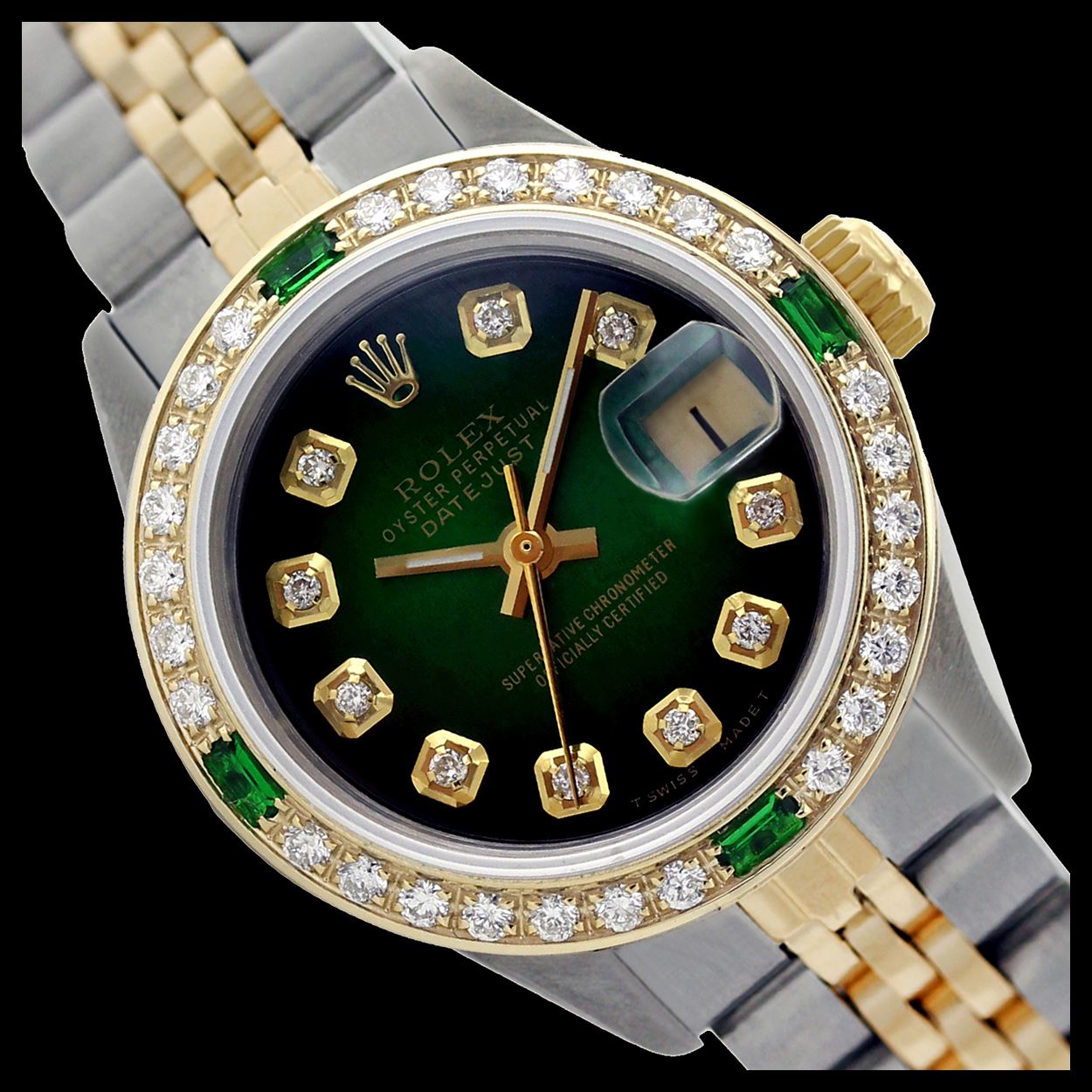 Rolex Men's Two Tone 14K Gold/ss, QuickSet, Diam Dial & Diam/Emerald BezelThis watch is in Excellent Condition.