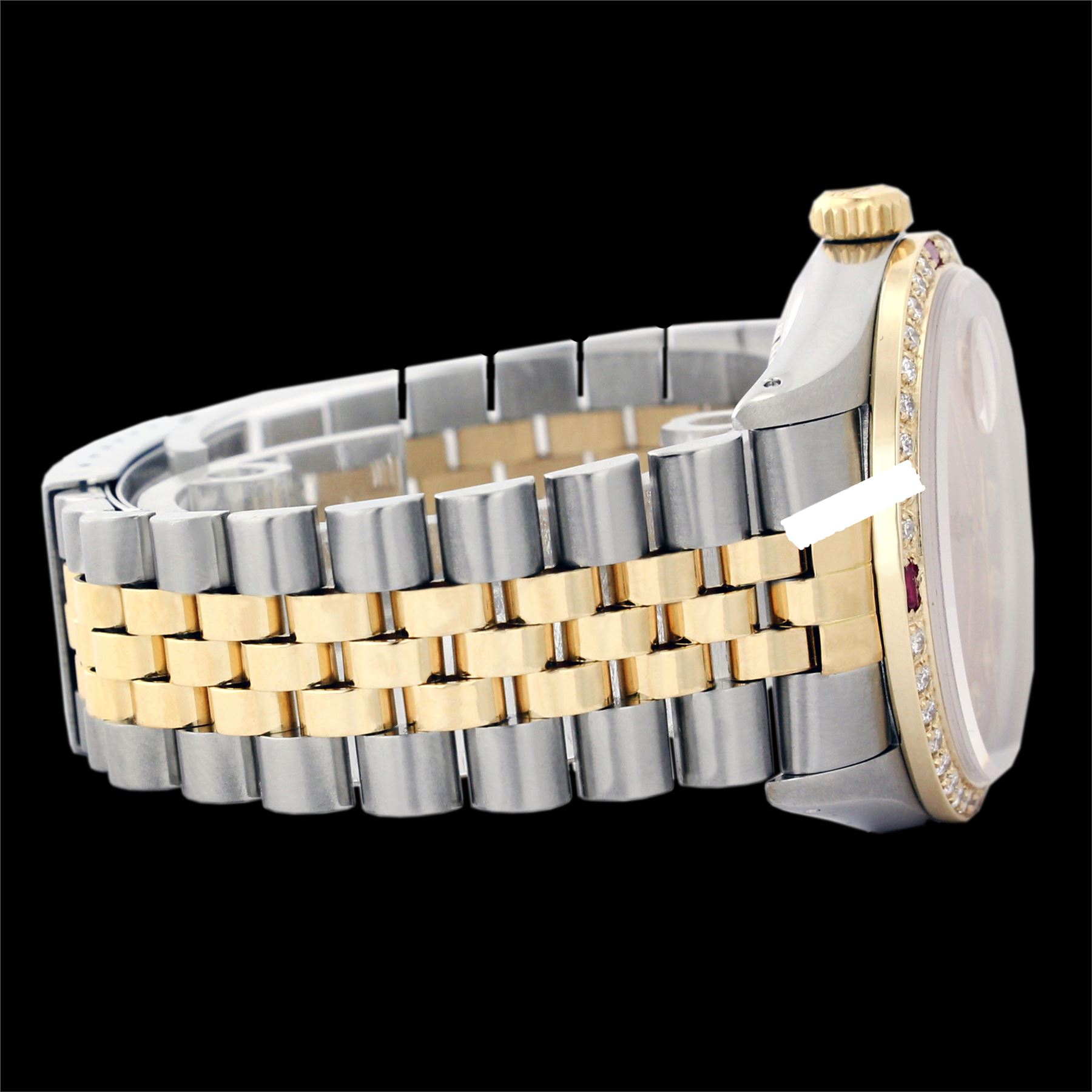 REF-474Y5X ---- Rolex Men's Two Tone 14K Gold/ss, QuickSet, Diam Dial & Diam/Ruby BezelThis watch is in Excellent Condition.