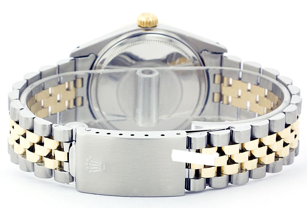 WATCH DETAILS: ITEM: WatchBRAND: RolexTYPE: Two ToneFEATURE: QuickSetMODEL: DateJustMADE: Swiss MadeGENDER: Men'sCONDITION: Pre-OwnedFUNCTION: DateDIAL COLOR: PeachHOUR MARKERS: 10 Round Custom Made DiamondBEZEL TYPE: Custom Made Diamond & Ruby BezelBEZEL STONE: Diamond G-VVS1 & 4 Burmise RubyBEZEL MATERIAL: 18K GoldBRACELET TYPE: Jubilee BRACELET MATERIAL: 14K Yellow Gold & Stainless SteelCLASP TYPE: Folding ClaspCLASP MATERIAL: Stainless SteelCASE STONE: CASE SIZE: 36mmCRYSTAL: Scratch Resistance Sapphire CrystalMOVEMENT: Automatic (Self Winding)CALIBER: 3035CROWN TYPE: Screw Down CrownWATER RESISTANCE: Waterproof to 10 ATM/100 meters/330 feetMODEL #: 16013SKU #: AMTJQS110We Buy/Sell/Trade Valuable watches, Please call us