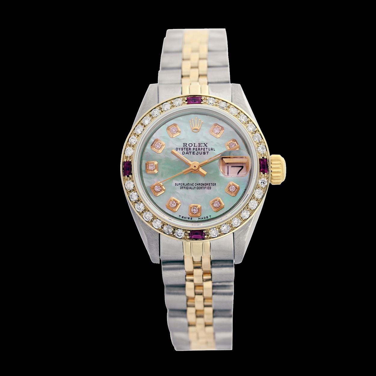 Rolex Men's Two Tone 14K Gold/ss, QuickSet, Diam Dial & Diam/Ruby BezelThis watch is in Excellent Condition.