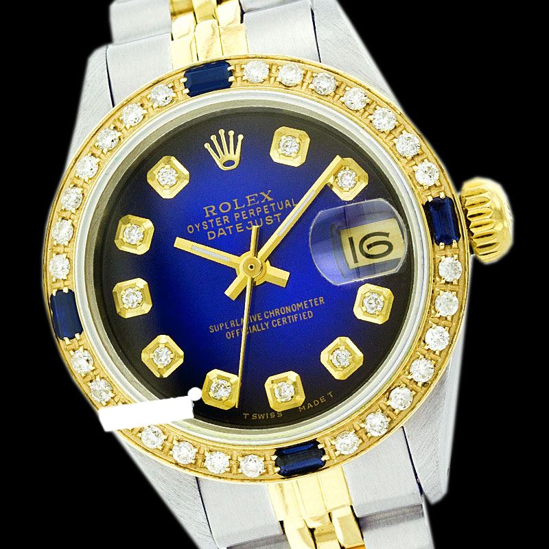 WATCH DETAILS: ITEM: WatchBRAND: RolexTYPE: Two ToneFEATURE: QuickSetMODEL: DateJustMADE: Swiss MadeGENDER: Men'sCONDITION: Pre-OwnedFUNCTION: DateDIAL COLOR: BlueHOUR MARKERS: 10 Round Custom Made DiamondBEZEL TYPE: Custom Made Diamond & Sapphire BezelBEZEL STONE: Diamond 1 CTW G-VVS1 & Ceylon Blue SapphireBEZEL MATERIAL: 18K GoldBRACELET TYPE: Jubilee BRACELET MATERIAL: 14K Yellow Gold & Stainless SteelCLASP TYPE: Folding ClaspCLASP MATERIAL: Stainless SteelCASE STONE: CASE SIZE: 36mmCRYSTAL: Scratch Resistance Sapphire CrystalMOVEMENT: Automatic (Self Winding)CALIBER: 3035CROWN TYPE: Screw Down CrownWATER RESISTANCE: Waterproof to 10 ATM/100 meters/330 feetMODEL #: 16013SKU #: AMTJQS160We Buy/Sell/Trade Valuable watches, Please call us