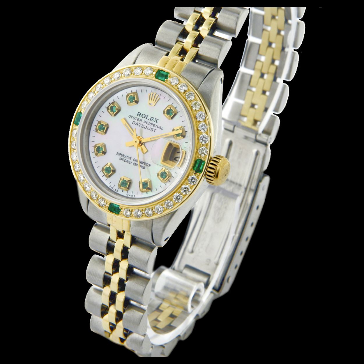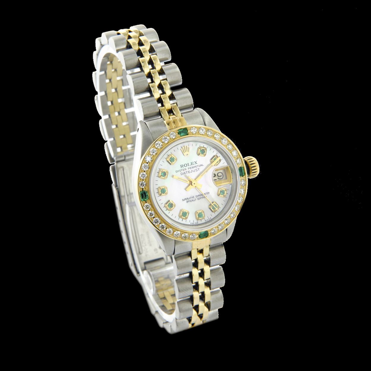 Rolex Men's Two Tone 14K Gold/ss, QuickSet, Diam/Emerald Dial & Diam/Emerald BezelThis watch is in Excellent Condition.