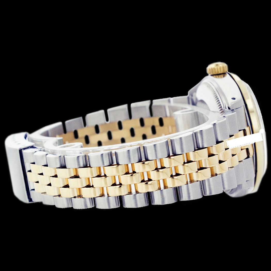 WATCH DETAILS: ITEM: WatchBRAND: RolexTYPE: Two ToneFEATURE: QuickSetMODEL: DateJustMADE: Swiss MadeGENDER: Men'sCONDITION: Pre-OwnedFUNCTION: DateDIAL COLOR: BlueHOUR MARKERS: 10 Round Custom Made DiamondBEZEL TYPE: Custom Made Diamond BezelBEZEL STONE: Diamond 1.14 CTW G-VVS1 BEZEL MATERIAL: 18K GoldBRACELET TYPE: Jubilee BRACELET MATERIAL: 14K Yellow Gold & Stainless SteelCLASP TYPE: Folding ClaspCLASP MATERIAL: Stainless SteelCASE STONE: CASE SIZE: 36mmCRYSTAL: Scratch Resistance Sapphire CrystalMOVEMENT: Automatic (Self Winding)CALIBER: 3035CROWN TYPE: Screw Down CrownWATER RESISTANCE: Waterproof to 10 ATM/100 meters/330 feetMODEL #: 16013SKU #: AMTJQS140We Buy/Sell/Trade Valuable watches, Please call us