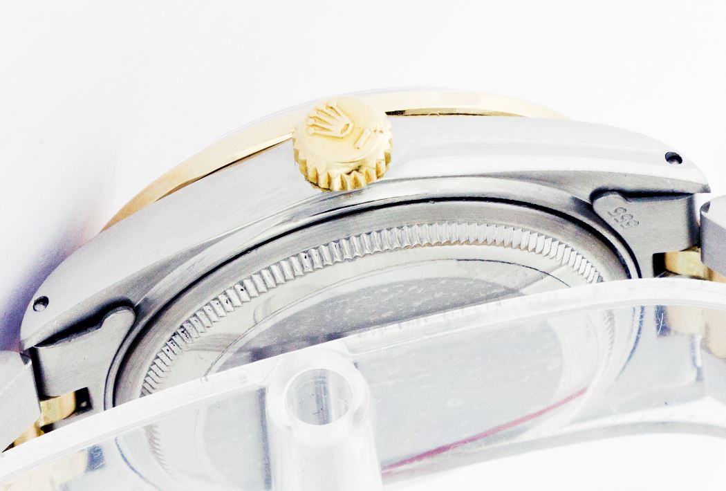 WATCH DETAILS: ITEM: WatchBRAND: RolexTYPE: Two ToneFEATURE: QuickSetMODEL: DateJustMADE: Swiss MadeGENDER: Men'sCONDITION: Pre-OwnedFUNCTION: DateDIAL COLOR: whiteHOUR MARKERS: 10 Round Custom Made DiamondBEZEL TYPE: Custom Made Diamond BezelBEZEL STONE: Diamond 1.14 CTW G-VVS1 BEZEL MATERIAL: 18K GoldBRACELET TYPE: Jubilee BRACELET MATERIAL: 14K Yellow Gold & Stainless SteelCLASP TYPE: Folding ClaspCLASP MATERIAL: Stainless SteelCASE STONE: CASE SIZE: 36mmCRYSTAL: Scratch Resistance Sapphire CrystalMOVEMENT: Automatic (Self Winding)CALIBER: 3035CROWN TYPE: Screw Down CrownWATER RESISTANCE: Waterproof to 10 ATM/100 meters/330 feetMODEL #: 16013SKU #: AMTJQS98We Buy/Sell/Trade Valuable watches, Please call us