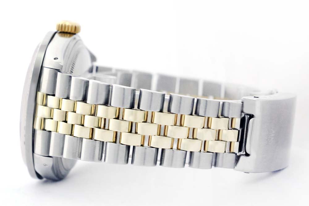WATCH DETAILS: ITEM: WatchBRAND: RolexTYPE: Two ToneFEATURE: QuickSetMODEL: DateJustMADE: Swiss MadeGENDER: Men'sCONDITION: Pre-OwnedFUNCTION: DateDIAL COLOR: whiteHOUR MARKERS: 10 Round Custom Made DiamondBEZEL TYPE: Custom Made Diamond BezelBEZEL STONE: Diamond 1.14 CTW G-VVS1 BEZEL MATERIAL: 18K GoldBRACELET TYPE: Jubilee BRACELET MATERIAL: 14K Yellow Gold & Stainless SteelCLASP TYPE: Folding ClaspCLASP MATERIAL: Stainless SteelCASE STONE: CASE SIZE: 36mmCRYSTAL: Scratch Resistance Sapphire CrystalMOVEMENT: Automatic (Self Winding)CALIBER: 3035CROWN TYPE: Screw Down CrownWATER RESISTANCE: Waterproof to 10 ATM/100 meters/330 feetMODEL #: 16013SKU #: AMTJQS8We Buy/Sell/Trade Valuable watches, Please call us