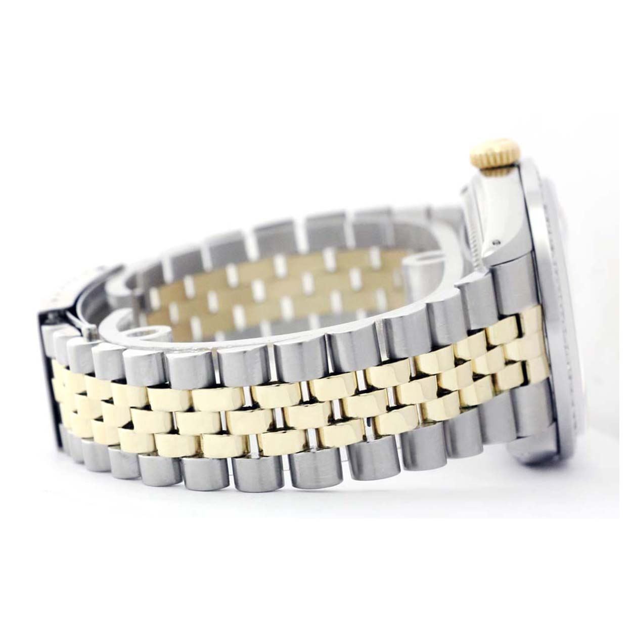 WATCH DETAILS: ITEM:     WatchBRAND:     RolexTYPE:     Two ToneFEATURE:     QuickSetMODEL:     DateJustMADE:     Swiss MadeGENDER:     Men'sCONDITION:     Pre-OwnedFUNCTION:     DateDIAL COLOR:     whiteHOUR MARKERS:     10 Round Custom Made DiamondBEZEL TYPE:     Custom Made Diamond BezelBEZEL STONE:     Diamond 1.14 CTW G-VVS1 BEZEL MATERIAL:     18K GoldBRACELET TYPE:     Jubilee BRACELET MATERIAL:     14K Yellow Gold & Stainless SteelCLASP TYPE:     Folding ClaspCLASP MATERIAL:     Stainless SteelCASE STONE:     CASE SIZE:     36mmCRYSTAL:      Scratch Resistance Sapphire CrystalMOVEMENT:     Automatic (Self Winding)CALIBER:     3035CROWN TYPE:     Screw Down CrownWATER RESISTANCE:     Waterproof to 10 ATM/100 meters/330 feetMODEL #:     16013SKU #:     AMTJQS8We Buy/Sell/Trade Valuable watches, Please call us