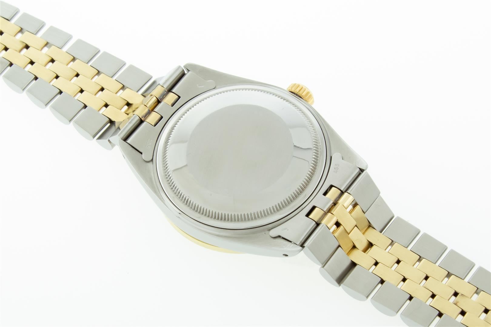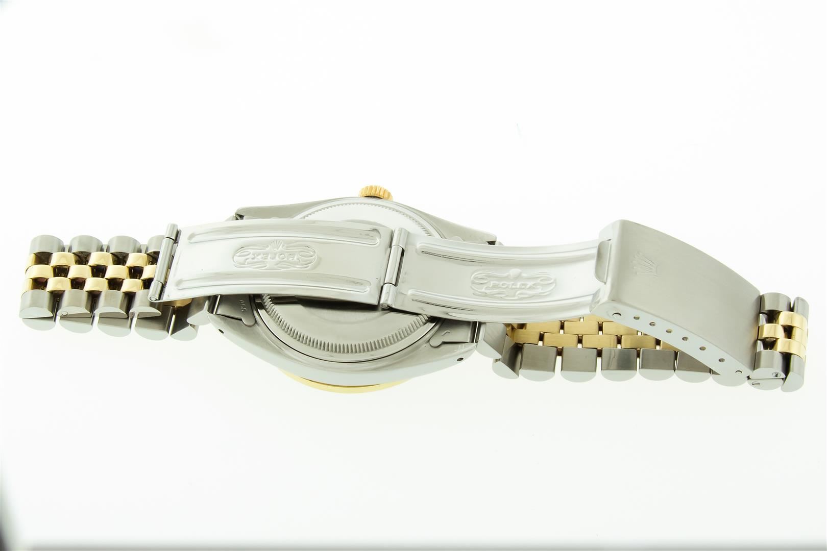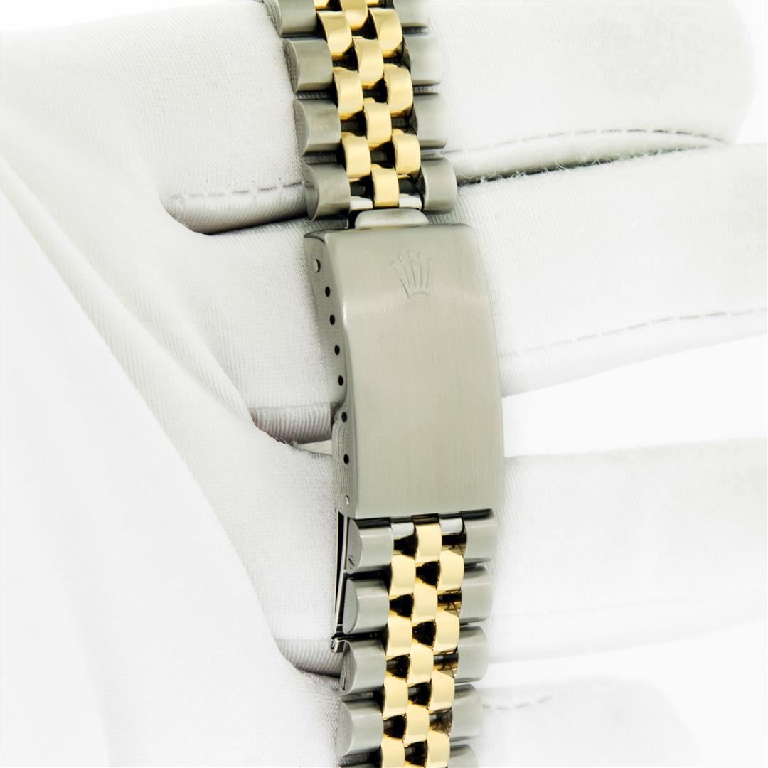One Men's Yellow Gold Two Tone Rolex Datejust Polished, Serviced & Electronically Tested, Rolex Yellow Gold & Stainless Steel Case: 36mm, Rolex Yellow Gold Crown, Custom Bezel: New 18K Yellow Gold Beadset Diamond Bezel, Diamond Count: 44 Diamonds, Clarity: SI-VS, Color: G to H. Custom Crystal: New Sapphire with Date Window. Custom Hands: New Luminescent Hands. Rolex Movement: Automatic Winding Movement. Custom Dial: Black Onyx. Date Window: 3 O'Clock Position Date Display, Quickset, Model: Datejust. Condition: G-6 Extra Fine. Rolex Bracelet: Two Tone Yellow Gold & Stainless Steel Jubilee. Bright Polish. 7.0 Inch Length, Adjustable. Standard Clasp, with Rolex Logo. This Pre Owned Watch Has Been Serviced Time Tested And Is In Excellent Condition It Is Free Of All Scratches And Dents.