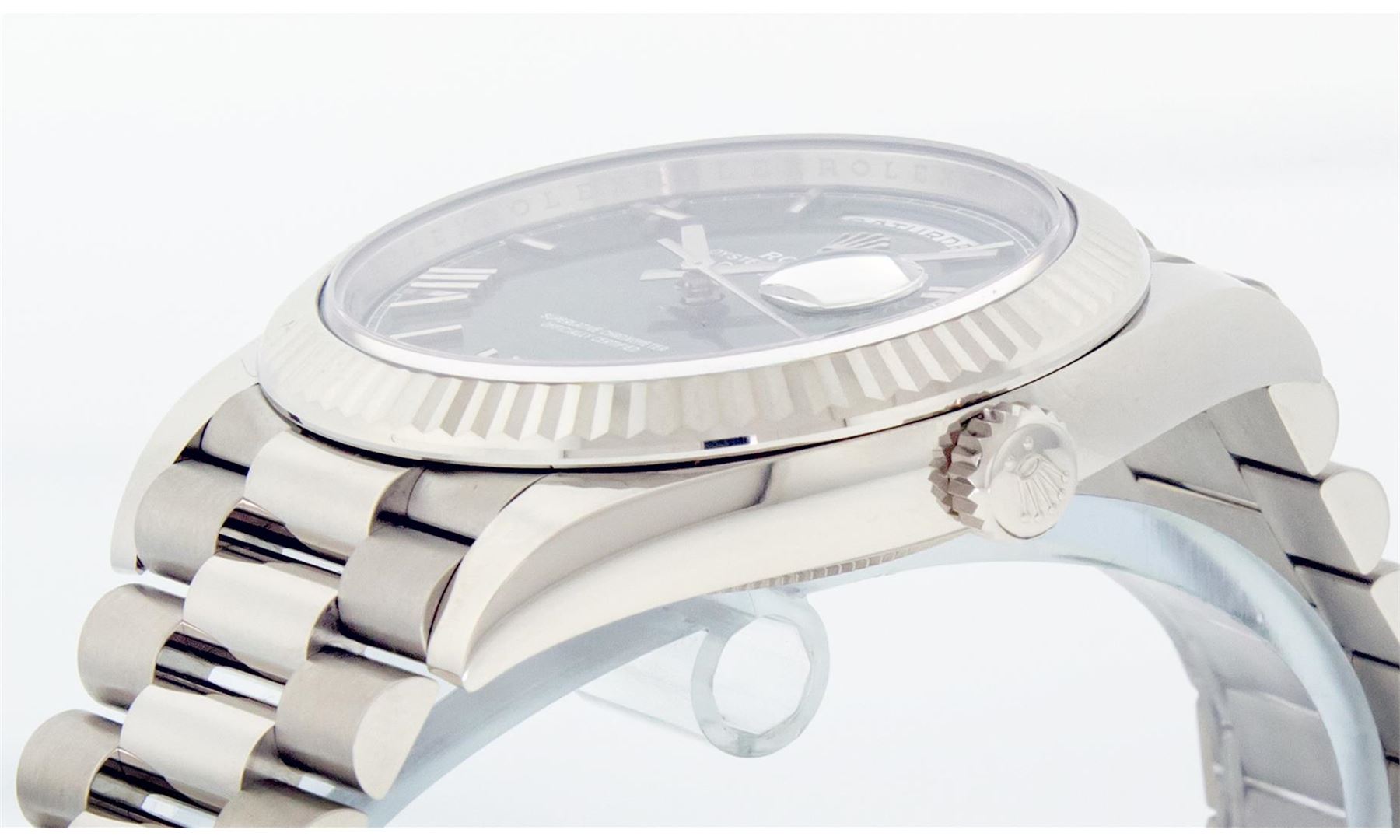 Rolex Mens 18K White Gold Olive Green Roman Dial Day Date President 40MM With Bo