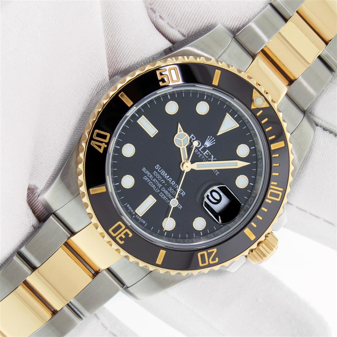 One Mens Pre Owned New Style Rolex 18K Yellow Gold And Stainless Steel Submariner Polished Bright with Satin Finish, This Watch Has Been Serviced & Electronically Tested, Rolex Stainless Steel Case: 40mm, Rolex Original Bezel: Rolex 18k Yellow Gold Rotata