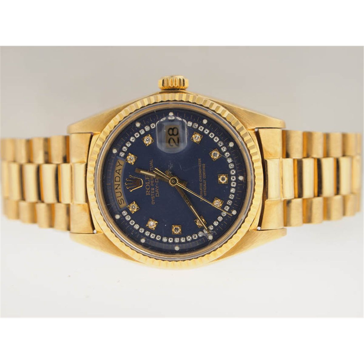 Rolex Mens 18k Gold President. Diamond String Dial. Rolex, Mens, 18k Gold, Oyster Perpetual, Day-Date, President, Vintage, Custom Aftermarket Diamond String Dial, Relisted Due to NPB, Automatic Movement, Deployment Buckle, Swiss Made, Beautiful Vintage Condition, Pre-Owned.