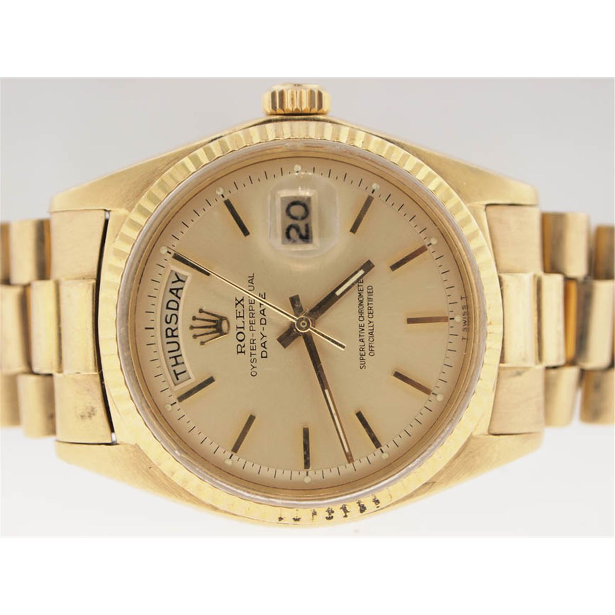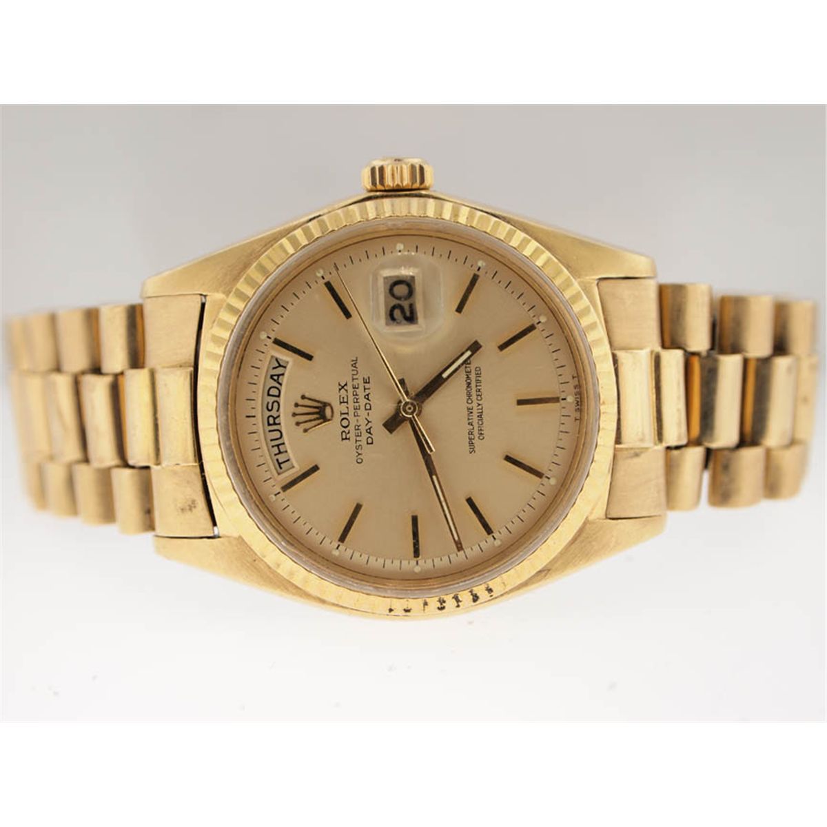 Rolex Mens 18k Gold President. Hash Dial. Rolex, Mens, 18k Gold, Oyster Perpetual, Day-Date, President, Automatic Movement, Deployment Buckle, Hidden Clasp, Swiss Made, Beautiful Condition, Pre-Owned.