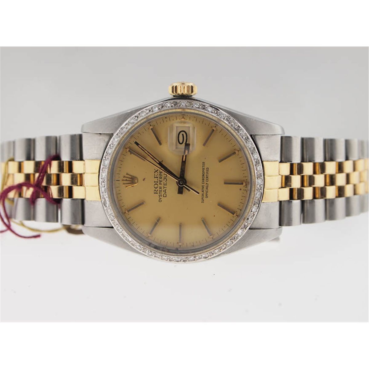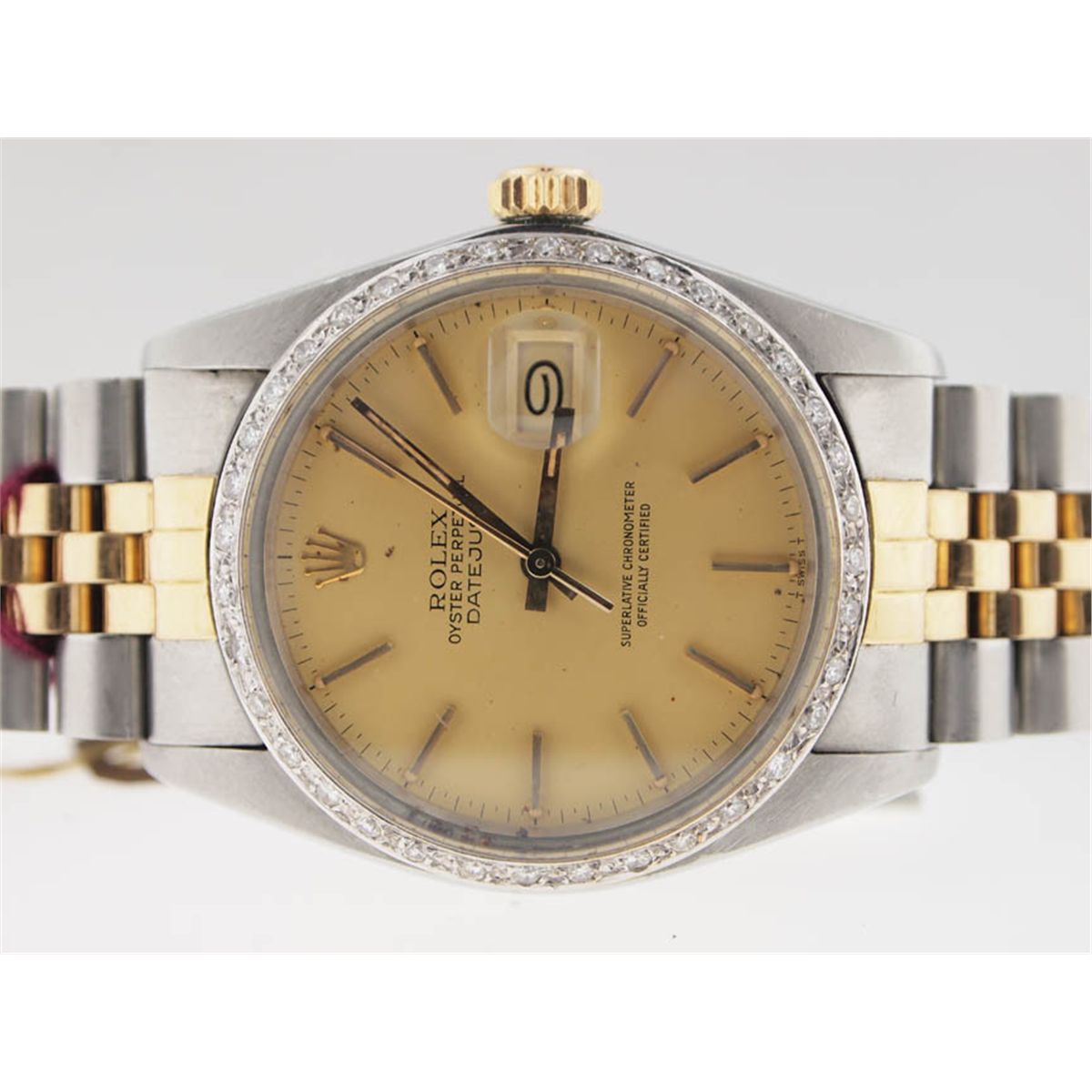 Rolex Mens 18k and SS Datejust. Diamond Bezel. Rolex, Mens, 18k Gold, Stainless Steel, Oyster Perpetual, Datejust, Custom Aftermarket Diamond Bezel, Hash Dial, Automatic Movement, Jubilee Bracelet, Deployment Buckle, Swiss Made, Beautiful Condition, Pre-Owned.
