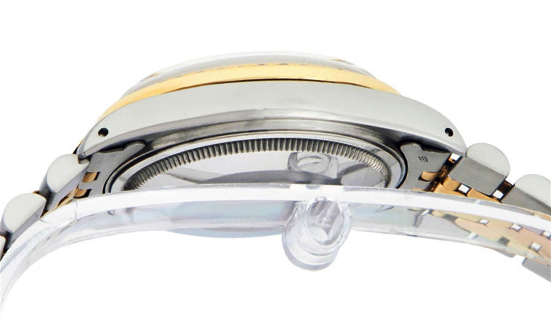 One Mens 14K Yellow Gold Two Tone Rolex Datejust Polished, Serviced & Electronically Tested, 18K Yellow Gold & Stainless Steel Case: 36mm, 18K Yellow Gold Crown, Custom Bezel: New 18K Yellow Gold Beadset Diamond Bezel, Diamond Count: 44 Diamonds, Total Weight 1.00 Carat, Clarity: SI-VS, Color: G to H. Crystal: New Synthetic Sapphire Cyclops Lens. Custom Hands: New Luminecent Hands. Movement: Automatic Winding Movement Caliber 3035. Custom Dial: Champagne and Baguette Diamond Hour Markers On 6 and 9, Diamond Count: 8 + 2 Bagguette Diamonds in Dial G To H In Color, Clarity: VS2-SI1, Date Window: 3 O'Clock Position Date Display, Quickset, Model: 16013 Condition: G-6 Extra Fine. Bracelet: Two Tone 14K Yellow Gold & Stainless Steel Jubilee. Bright Polish. 7.0 Inch Length, Adjustable. Standard Clasp, With Rolex Logo. This Watch Has Been Serviced Time Tested And Is In Excellent Condition It Is Free Of All Scratches And Dents.