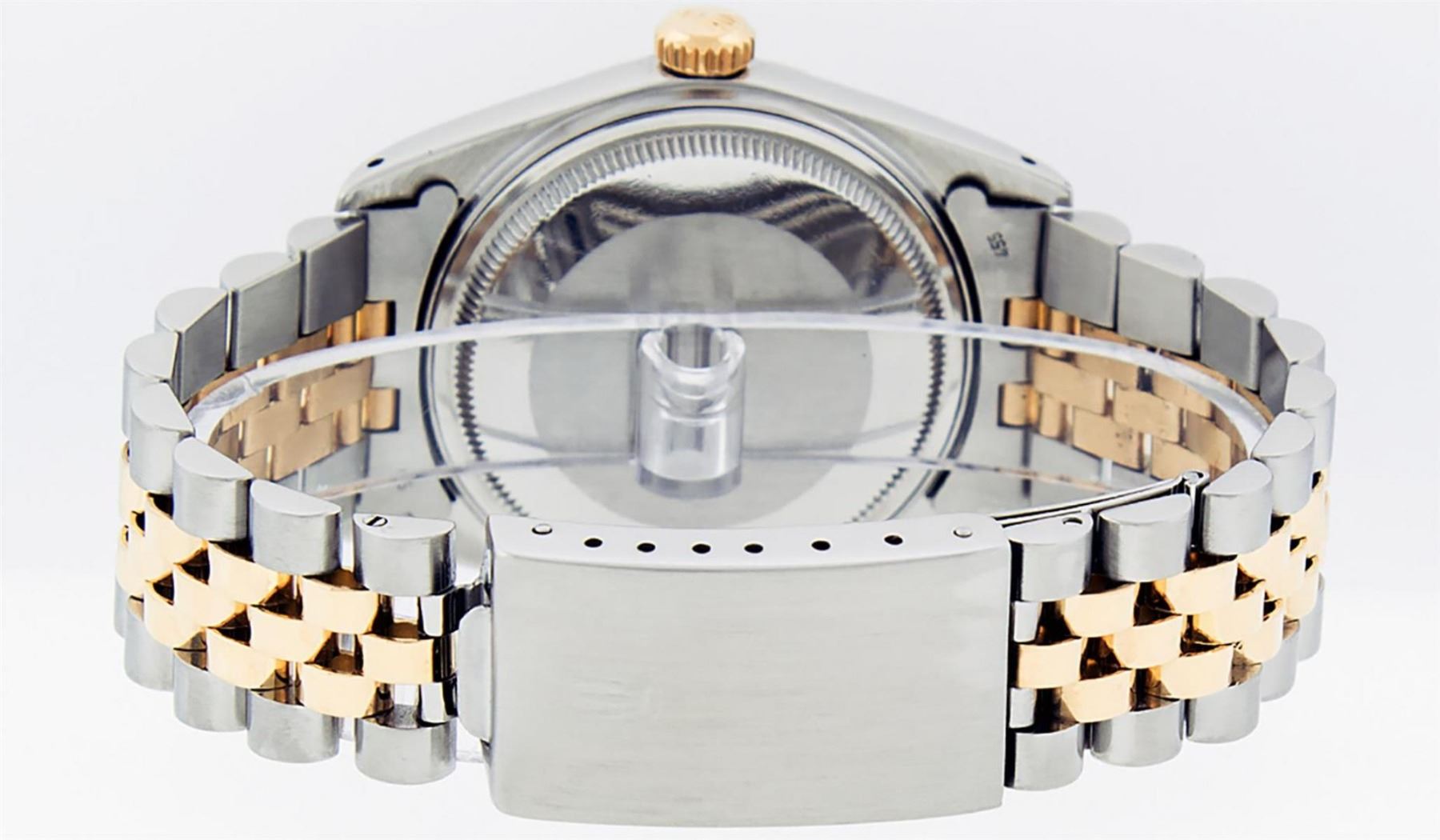 One Mens 14K Yellow Gold Two Tone Rolex Datejust Polished, Serviced & Electronically Tested, 14K Yellow Gold & Stainless Steel Case: 36mm, 14K Yellow Gold Crown, Bezel: 14K Yellow Gold Fluted Bezel. Custom Crystal: New Acrylic Cyclops Lens. Custom Hands: New Luminecent Hands. Movement: Automatic Winding Movement Caliber 3035. Dial: Champagne Index Dial With Dash Track & Lumi Dots. Date Window: 3 O'Clock Position Date Display, Quickset, Model: Datejust. Condition: G-6 Extra Fine. Bracelet: Two Tone 14K Yellow Gold & Stainless Steel Jubilee Band. Bright Polish. 7.0 Inch Length, Adjustable. Standard Clasp, With Rolex Logo. This Watch Has Been Serviced Time Tested And Is In Excellent Condition It Is Free Of All Scratches And Dents.