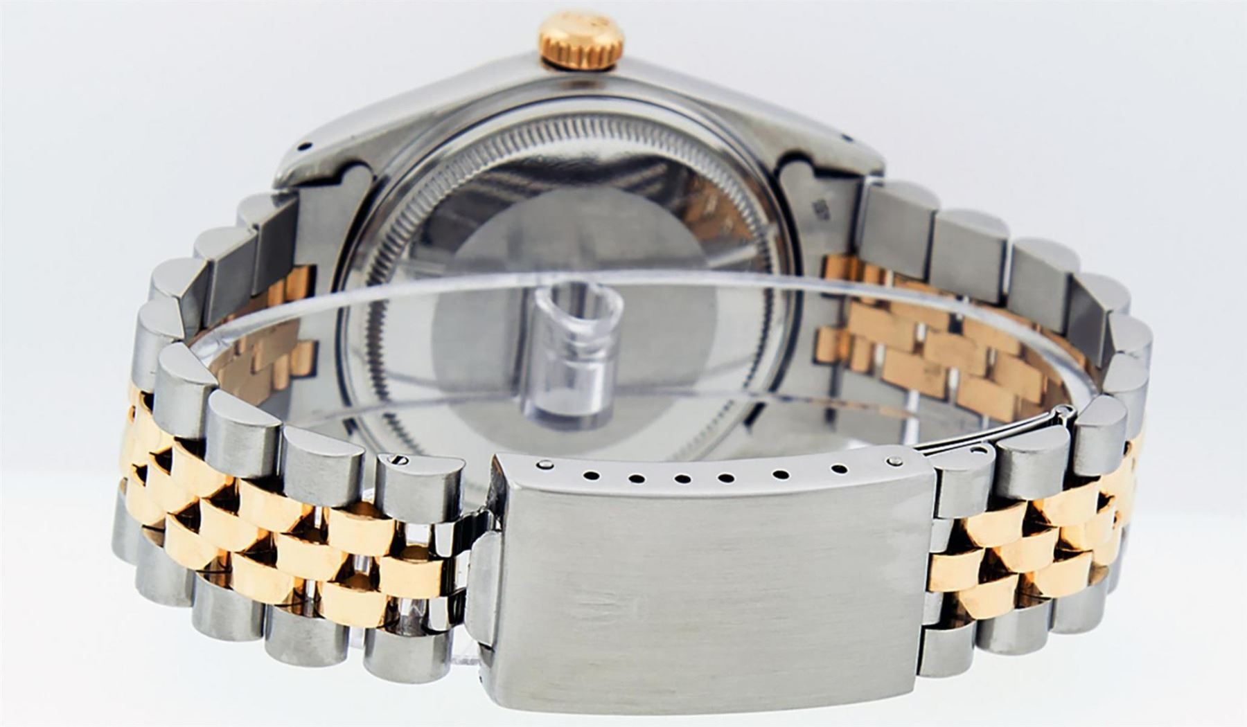 One Mens Yellow Gold Two Tone Rolex Datejust Polished, Serviced & Electronically Tested, Yellow Gold & Stainless Steel Case: 36mm,14K Yellow Gold Crown, Bezel: Yellow Gold Fluted Bezel. Custom Crystal: New Acrylic Cyclops Lens. Custom Hands: New Luminecent Hands. Movement: Automatic Winding Movement . Dial: Champagne Dial With Index Hour Markers and Small Track. Date Window: 3 O'Clock Position Date Display, Quickset, Model: Condition: G-6 Extra Fine. Bracelet: Two Tone Yellow Gold & Stainless Steel Jubilee. Bright Polish. 7.0 Inch Length, Adjustable. Standard Clasp, With Rolex Logo. This Watch Has Been Serviced Time Tested And Is In Excellent Condition It Is Free Of All Scratches And Dents.