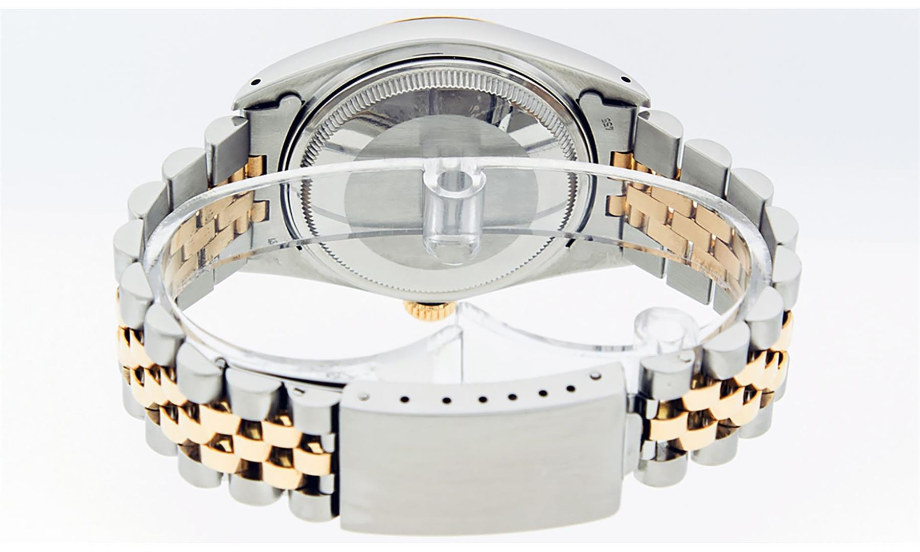 One Mens Yellow Gold Two Tone Rolex Datejust Polished, Serviced & Electronically Tested, Yellow Gold & Stainless Steel Case: 36mm, Yellow Gold Crown, Bezel: Yellow Gold Fluted Bezel. Custom Crystal: New Acrylic Cyclops Lens. Custom Hands: New Luminecent Hands. Movement: Automatic Winding Movement. Dial: Champagne Index Dial With Dash Track & Lumi Dots. Date Window: 3 O'Clock Position Date Display, Quickset, Model: Datejust. Condition: G-6 Extra Fine. Bracelet: Two Tone Yellow Gold & Stainless Steel Jubilee Band. Bright Polish. 7.0 Inch Length, Adjustable. Standard Clasp, With Rolex Logo. This Watch Has Been Serviced Time Tested And Is In Excellent Condition It Is Free Of All Scratches And Dents.