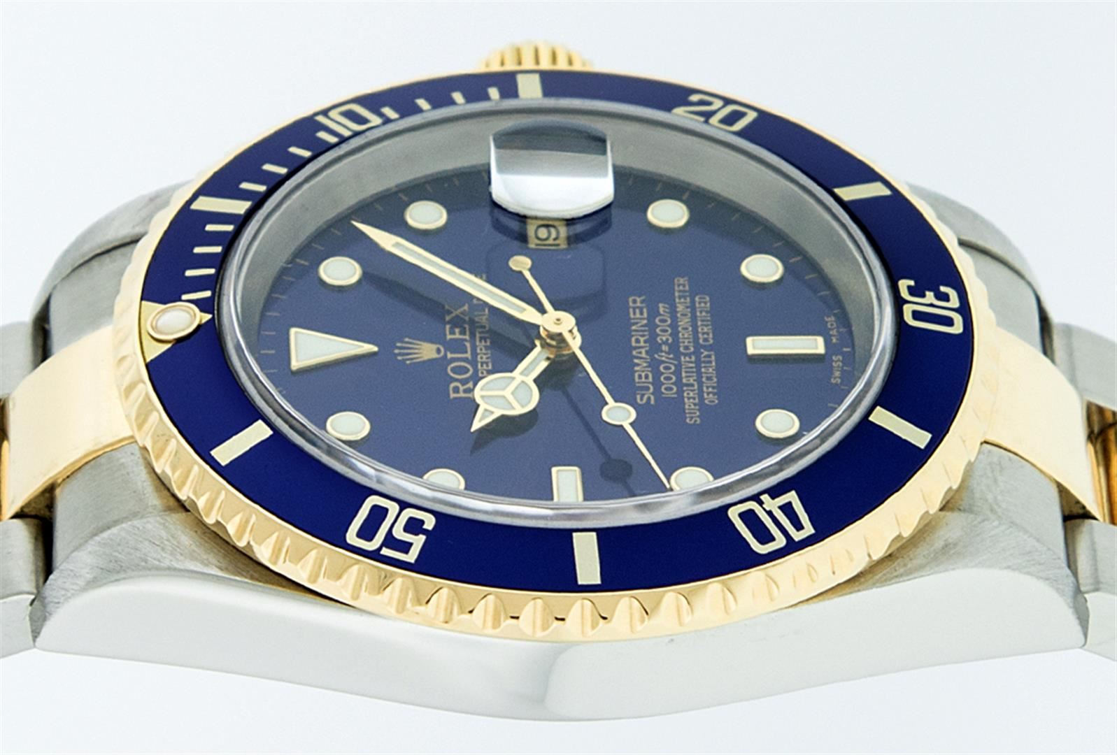 One Mens Pre Owned Rolex 18K Yellow Gold And Stainless Steel Two Tone Submariner With Date Polished, Serviced & Electronically Tested, Rolex Stainless Steel Case: 40mm, Rolex Yellow Gold Crown, Rolex Bezel: Yellow Gold Rotatable Bezel With Blue Insert. Cr