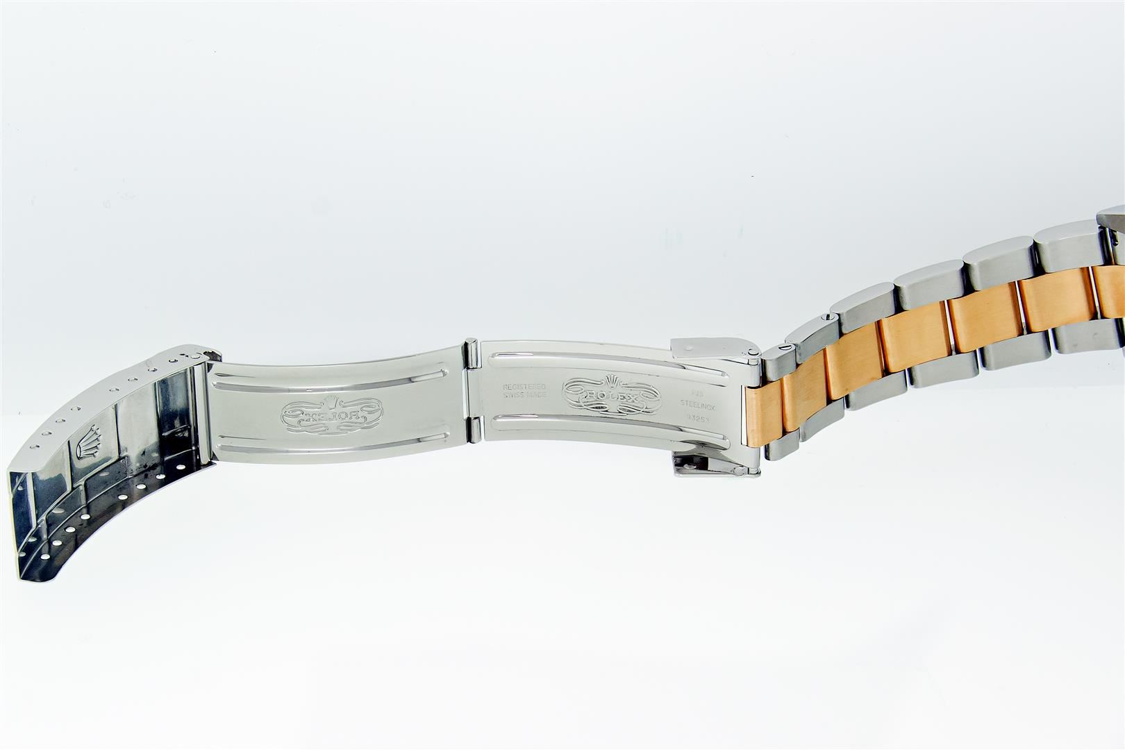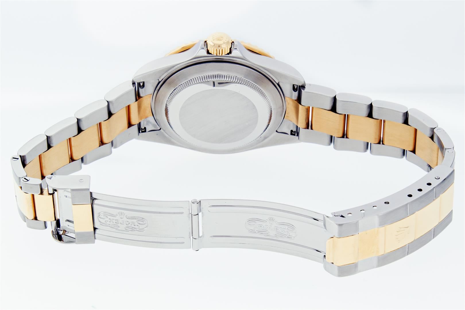 One Mens Pre Owned Rolex Two Tone 18K Yellow Gold And Stainless Steel Submariner With Date Polished, Serviced & Electronically Tested, Rolex Stainless Steel Case: 40mm, Yellow Gold Crown, Rolex Bezel: 18K Yellow Gold Rotatable Bezel With Blue Insert. Rolex Crystal: Sapphire With Cyclops Lens. Rolex Movement: Automatic Winding Movement Caliber 3135. Rolex Dial: Rolex Blue Submariner Dial with Luminous Index Hour Markers, Date Window: 3 O'Clock Position Date Display, Model: Submariner, Quickset, Condition: G-6 Extra Fine. Rolex Bracelet: Stainless Steel and Yellow Gold Oyster Band. Bright Polish & Satin Finish. 7.0 Inch Length, Adjustable. Standard Yellow Gold Clasp, With Rolex Logo. This Watch Includes 1 Rolex Hang Tag, 2 Rolex Booklets, 1 Rolex Leather Wallet, 1 Map Card And Rolex Box.