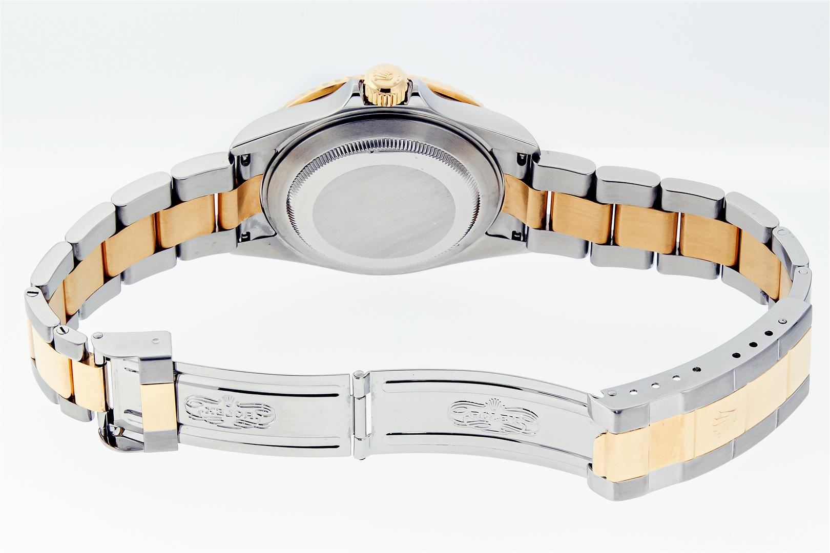 One Mens Pre Owned Rolex Two Tone 18K Yellow Gold And Stainless Steel Submariner With Date Polished, Serviced & Electronically Tested, Rolex Stainless Steel Case: 40mm, Yellow Gold Crown, Rolex Bezel: 18K Yellow Gold Rotatable Bezel With Blue Insert. Rolex Crystal: Sapphire With Cyclops Lens. Rolex Movement: Automatic Winding Movement Caliber 3135. Rolex Dial: Rolex Blue Submariner Dial with Luminous Index Hour Markers, Date Window: 3 O'Clock Position Date Display, Model: Submariner, Quickset, Condition: G-6 Extra Fine. Rolex Bracelet: Stainless Steel and Yellow Gold Oyster Band. Bright Polish & Satin Finish. 7.0 Inch Length, Adjustable. Standard Yellow Gold Clasp, With Rolex Logo. This Watch Includes 1 Rolex Hang Tag, 2 Rolex Booklets, 1 Rolex Leather Wallet, 1 Map Card And Rolex Box.