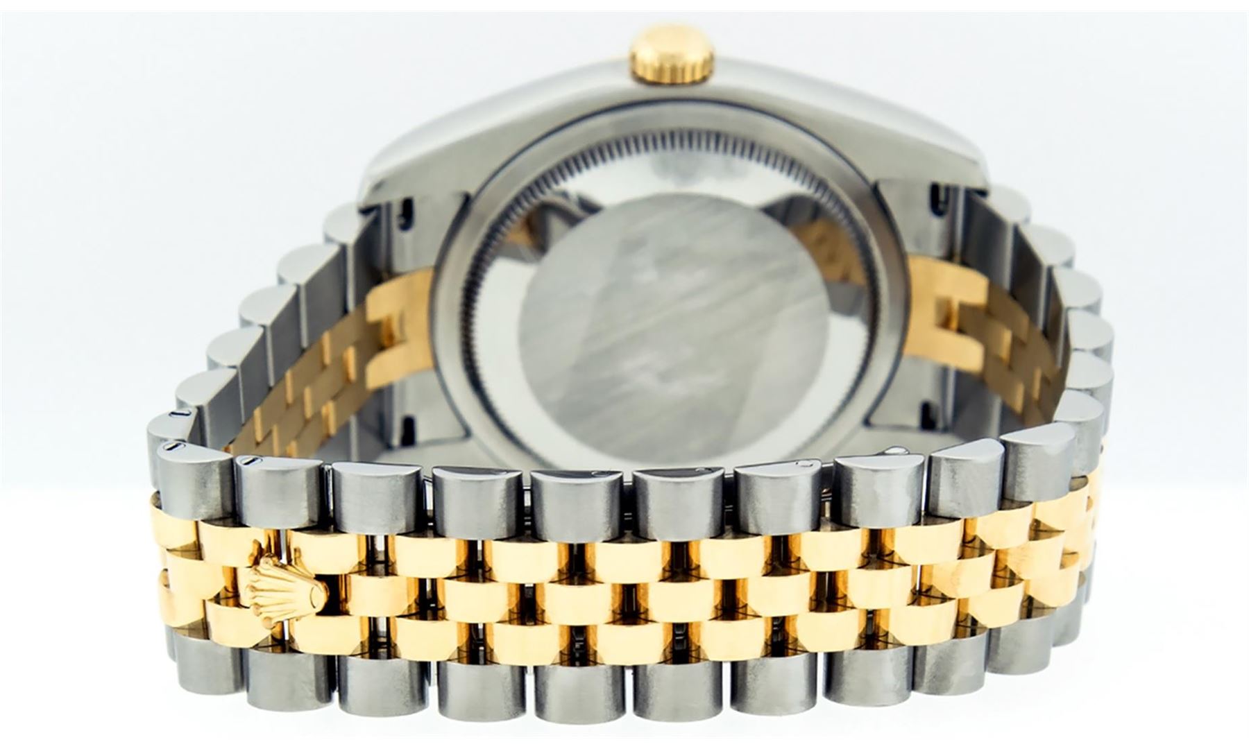 One Mens Rolex Two Tone 18K Yellow Gold And Stainless Steel Datejust, Polished Bright with Satin Finish, Serviced & Electronically Tested, Stainless Steel Case: 36mm, Rolex Yellow Gold Crown, Rolex Bezel: 18K Yellow Gold Fluted Bezel. Crystal: Sapphire With Cyclops Lens. Rolex Movement: Automatic Winding Movement Caliber 3135. Rolex Dial: Champagne Index With Square Roman Track. Date Window: 3 O'Clock Position Date Display, Quickset, Model: Quickset Datejust 116233. Condition: G-6 Extra Fine. Rolex Bracelet: 18K Yellow Gold And Stainless Steel Jubilee Band. Bright Polish & Satin Finish. 7.0 Inch Length, Adjustable. Standard Clasp, With Rolex Logo. This Pre Owned Watch Has Been Serviced Time Tested And Is In Excellent Condition It Is Free Of All Scratches And Dents.