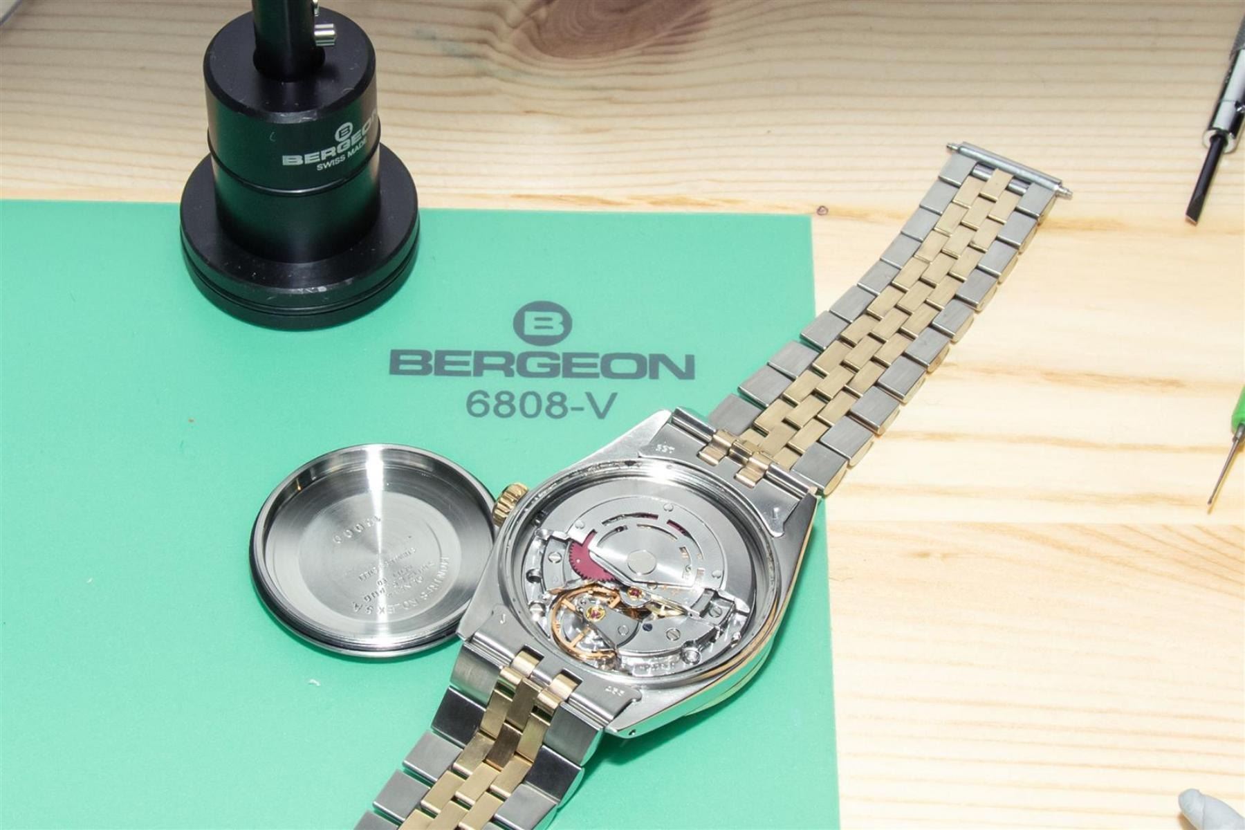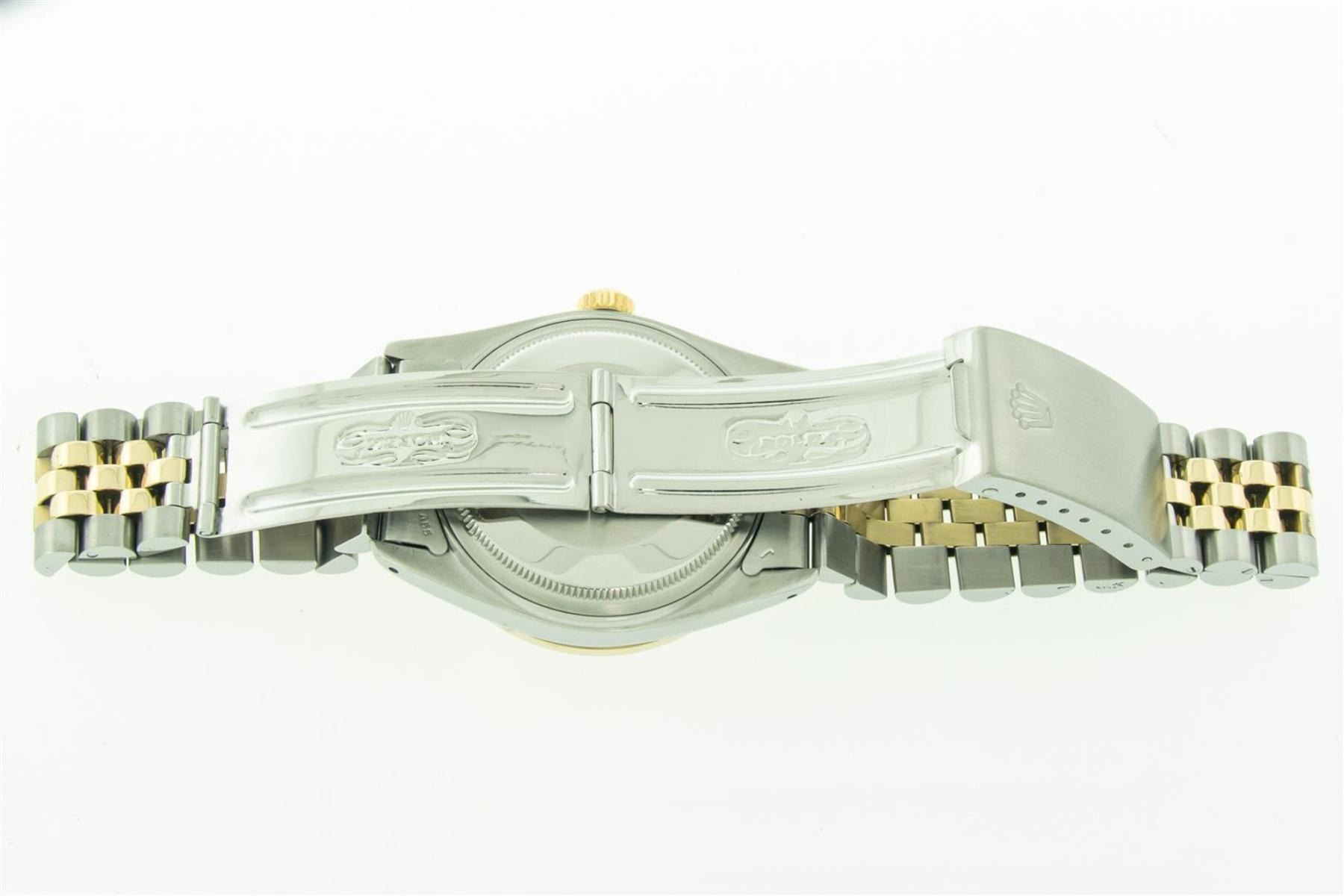 One Mens 18K Yellow Gold & Stainless Steel Two Tone Rolex Oyster Perpetual Datejust Polished, Serviced & Electronically Tested, 18K Yellow Gold & Stainless Steel Case: 36mm, Original 18K Yellow Gold Crown, Custom Bezel: New 18K Yellow Gold Beadset Diamond Bezel, Diamond Count: 44 Diamonds, Total Bezel Weight 1.00 Carat, Clarity: SI-VS, Color: G to H. Custom Crystal: New Scratch Resistant Sappphire Crystal Lens. Hands: Genuine Rolex Luminecent Hands. Movement: Automatic Winding Movement 3035. Original Dial: Original Rolex Factory Silver Index Dial with Roman Track & Lumi Dots, Date Window: 3 O'Clock Position Date Display, Quickset, Model: Datejust, Condition: G-6 Extra Fine. Bracelet: Tight Two Tone 18K Yellow Gold & Stainless Steel Jubilee Showing Little To No Stretch. Bright Polish. 7.0 Inch Length, Adjustable. Standard Clasp, With Rolex Logo. This Watch Has Been Serviced And Polished It Is Free Of All Scratches And Dents. This Watch Comes With The Following Accessories: Rolex Box, Rolex Booklets, Rolex Tag, and Rolex Wallet