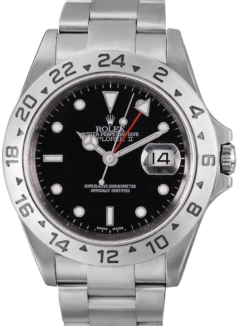 One Mens Pre Owned Stainless Steel Rolex Explorer II Polished, Serviced & Electronically Tested, Rolex Stainless Steel Case: 40mm, Rolex Stainless Steel Crown, Rolex Bezel: Stainless Steel Rolex Bezel. Crystal: Sapphire With Magnified Date Window. Rolex M