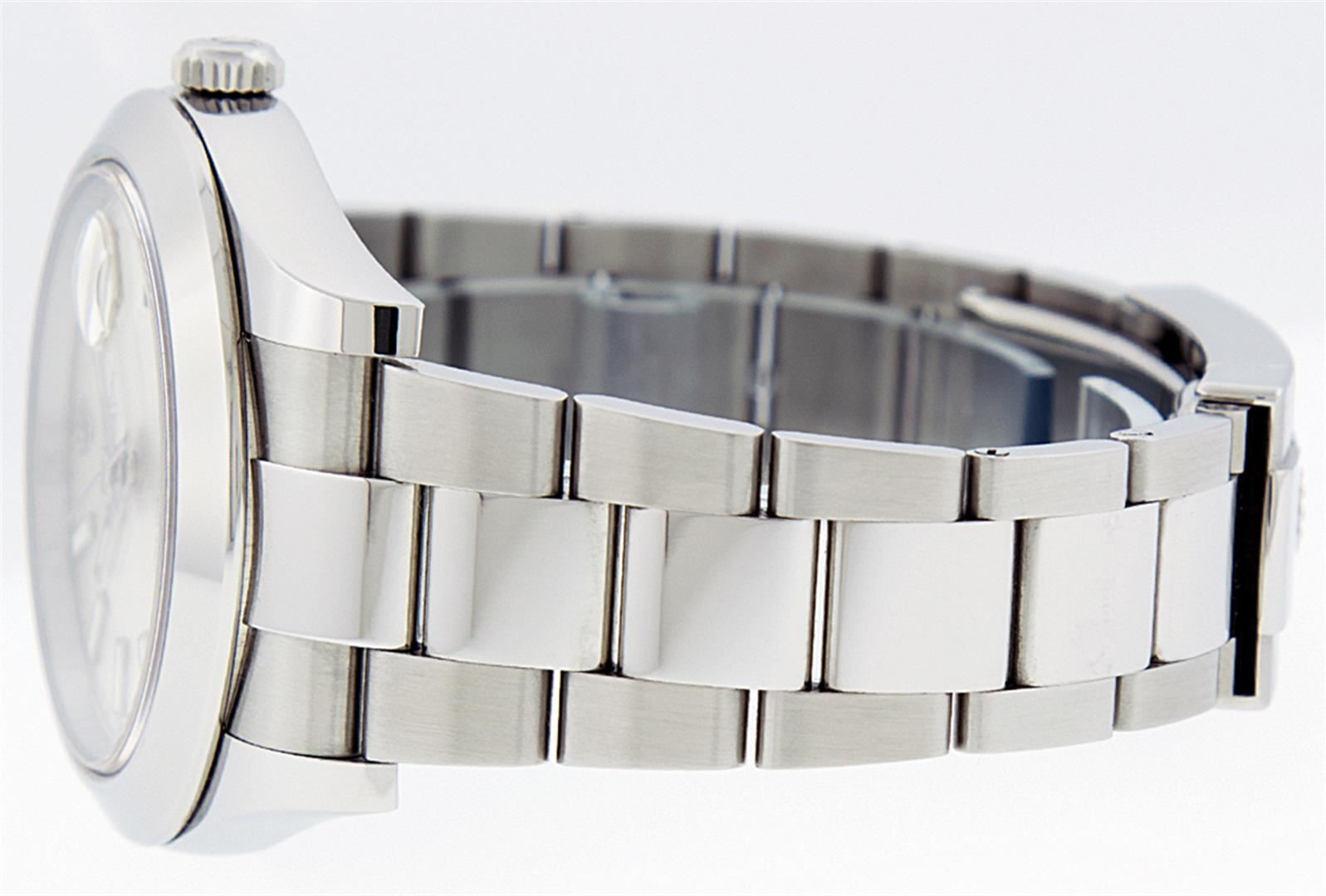 One Mens Rolex Datejust 2 41MM Polished, Serviced & Electronically Tested, Rolex Stainless Steel Case: 41mm, Stainless Steel Crown, Rolex Bezel: Stainless Steel Smooth Bezel, Crystal: Sapphire With Magnified Date Window. Hands: Luminescent Hands. Rolex Movement: Automatic Winding Movement 3136. Rolex Dial: White Index With Dash Track. Date Window: 3 O'Clock Position Date Display, Quickset, Model: Datejust 2. Condition: G-6 Extra Fine. Rolex Bracelet: Stainless Steel Oyster Band. Bright Polish & Satin Finish. 7.0 Inch Length, Adjustable. Standard Clasp, With Rolex Logo. This Pre Owned Watch Has Been Serviced Time Tested And Is In Excellent Condition It Is Free Of All Scratches And Dents.