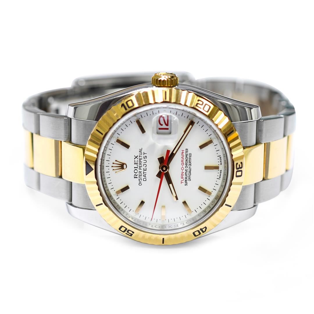 Rolex Datejust Turn-O-Graph Mens 36mm White Dial 18KT Rose/Steel Polished & Electronically Tested. Model: Datejust 116261, 18KT Rose Gold Crown. Case: Stainless Steel and 18KT Rose Gold. Bezel: Gold Turn-O-Graph Bezel. Crystal: Sapphire Crystal. Bracelet: Stainless Steel and 18KT Rose Gold Oyster Bracelet, Adjustable Standard Clasp with Rolex Logo. Dial: Original White Stick. Date Window: 3 O'clock Position date display. Movement: Automatic Winding Movement. Water Resistant: Yes. Case Size: 36mm. Condition: Pre Owned, Watch Has Minor Scratches, Near Mint G-7.