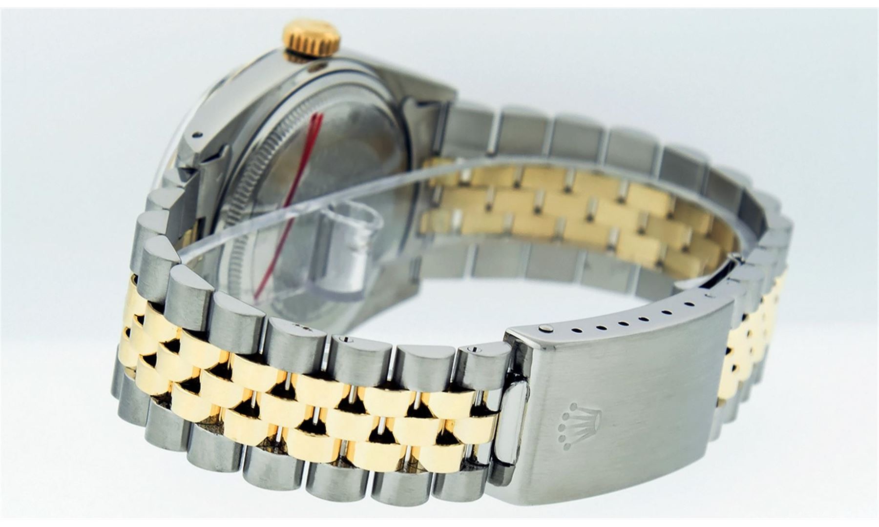 One Mens Pre Owned Quickset Two Tone 14K Yellow Gold And Stainless Steel Datejust Polished, Serviced & Electronically Tested, Yellow Gold & Stainless Steel Case: 36mm, Yellow Gold Crown, Rolex Bezel: 14K Yellow Gold Fluted Bezel. Custom Crystal: New Acrylic With Magnified Date Window. Hands: Luminescent Hands. Rolex Movement: Automatic Winding Movement 3035. Rolex Dial: Champagne Linen Dial With Index Hour Markers and Small Track With Lumi Dots. Date Window: 3 O'Clock Position Date Display, Quickset, Model: Datejust. Condition: G-6 Extra Fine. Rolex Bracelet: Two Tone 14K Yellow Gold & Stainless Steel Jubilee Band. Bright Polish. 7.0 Inch Length, Adjustable. Standard Clasp, With Rolex Logo. This Watch Has Been Serviced Time Tested And Is In Excellent Condition It Is Free Of All Scratches And Dents.