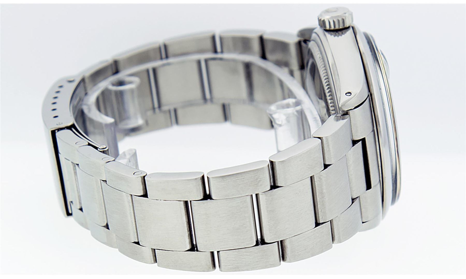 One Mens Rolex Quickset Stainless Steel Datejust Polished Bright with Satin Finish, Serviced & Electronically Tested, Rolex Stainless Steel Case: 36mm, Rolex Stainless Steel Crown, Rolex Bezel: Stainless Steel Smooth Bezel. Crystal: Sapphire With Magnified Date Window. Custom Hands: New Luminescent Hands. Rolex Movement: Automatic Winding Movement Caliber 3135. Custom Dial: Silver Roman With Square Track and Lumi Dot. Date Window: 3 O'Clock Position Date Display, Quickset, Model: Quickset Datejust. Condition: G-6 Extra Fine. Rolex Bracelet: Stainless Steel Oyster Band. Bright Polish & Satin Finish. 7.0 Inch Length, Adjustable. Standard Clasp, With Rolex Logo. This Pre Owned Watch Has Been Serviced Time Tested And Is In Excellent Condition It Is Free Of All Scratches And Dents.