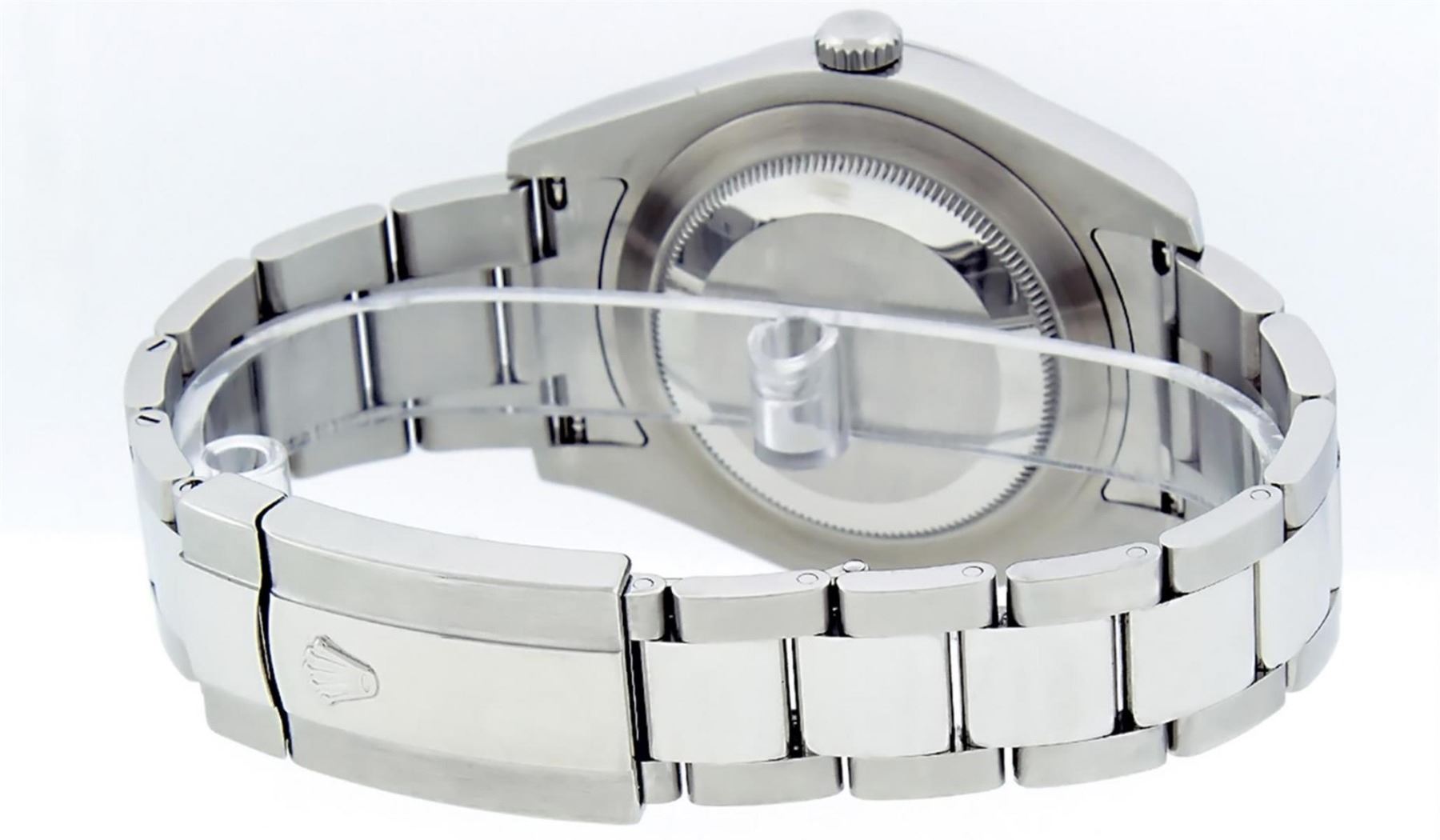 One Mens Rolex Datejust 2 Polished With Shiny Finish, Serviced & Electronically Tested, Stainless Steel Case: 41mm, Stainless Steel Crown, Bezel: Stainless Steel Smooth Bezel, Crystal: Scratch Resistant Synthetic Sapphire Cyclops Lens. Movement: Automatic Winding Movement Caliber 3136. Custom Dial: Red Roman Diamond Dial, Diamond Color: G To H, Clarity: SI-VS. Date Window: 3 O'Clock Position Date Display, Quickset, Model: Datejust 2. Condition: G-6 Extra Fine The Watch Is In Very Good Condition Free Of All Scratches And Dents. Bracelet: Stainless Steel Oyster Band. Bright Polish & Satin Finish. 7.5 Inch Length, Adjustable. Standard Clasp, With Rolex Logo. This Watch Has Been Serviced Time Tested And Is In Excellent Condition It Is Free Of All Scratches And Dents. This Watch Comes With A Rolex Box.