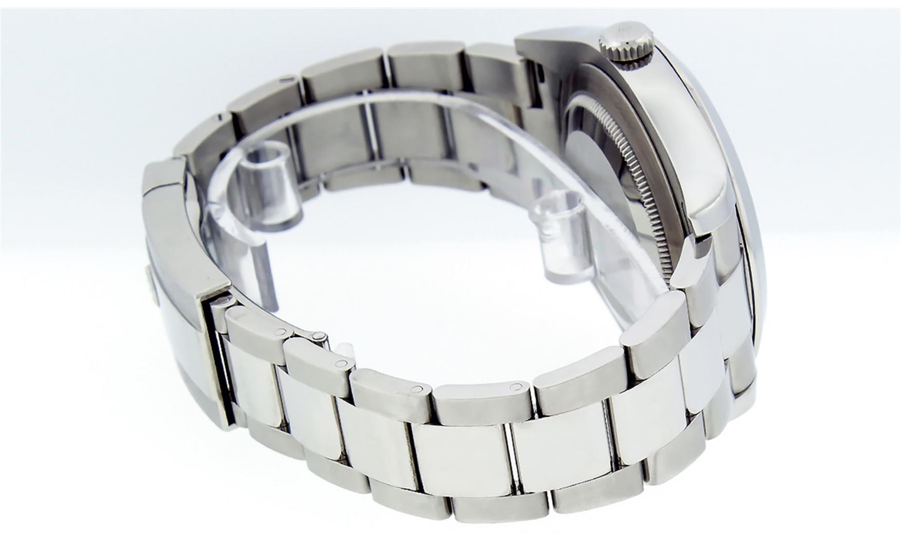 One Mens Pre Owned Rolex Datejust 2 Polished With Shiny Finish, Serviced & Electronically Tested, Stainless Steel Case: 41mm, Stainless Steel Crown, Bezel: Stainless Steel Smooth Bezel, Crystal: Scratch Resistant Synthetic Sapphire Cyclops Lens. Rolex Movement: Automatic Winding Movement. Custom Dial: Red With Custom Added Roman Diamond Hour Markers. Date Window: 3 O'Clock Position Date Display, Quickset, Model: Datejust 2. Condition: G-6 Extra Fine The Watch Is In Very Good Condition Free Of All Scratches And Dents. Rolex Bracelet: Stainless Steel Oyster Band. Bright Polish & Satin Finish. 7.5 Inch Length, Adjustable. Standard Clasp, With Rolex Logo. This Watch Has Been Serviced Time Tested And Is In Excellent Condition It Is Free Of All Scratches And Dents.